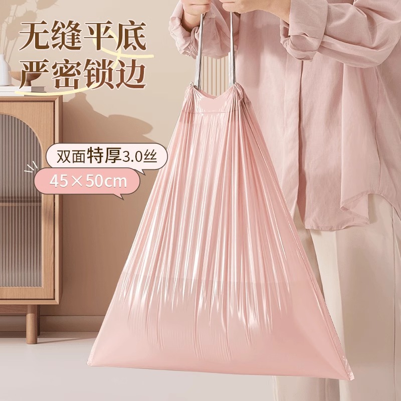 冰莓粉垃圾袋家用加厚手提式垃圾袋抽绳学生宿舍厨房塑料袋抽拉提