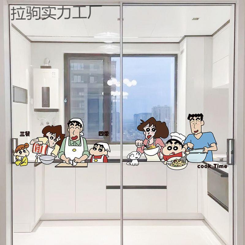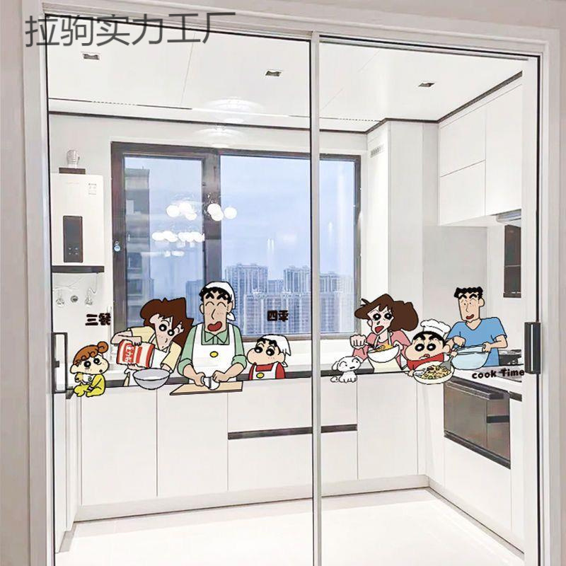 蜡笔小新厨房玻璃门贴纸家用防撞提示贴卫生间推拉门防水贴膜可爱