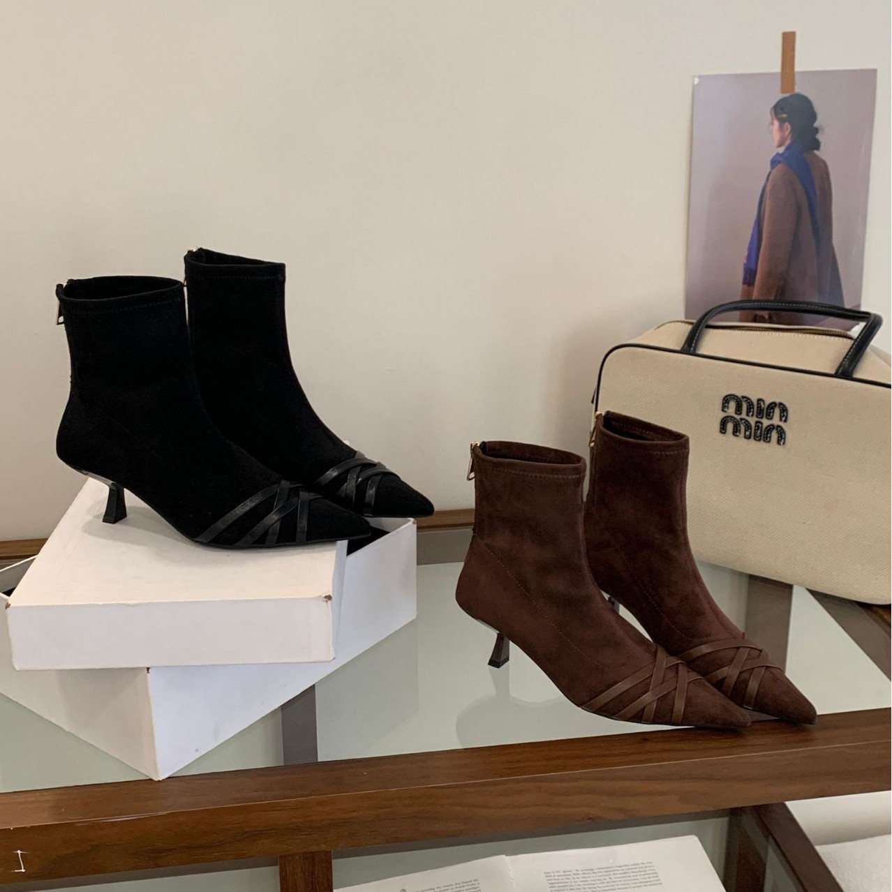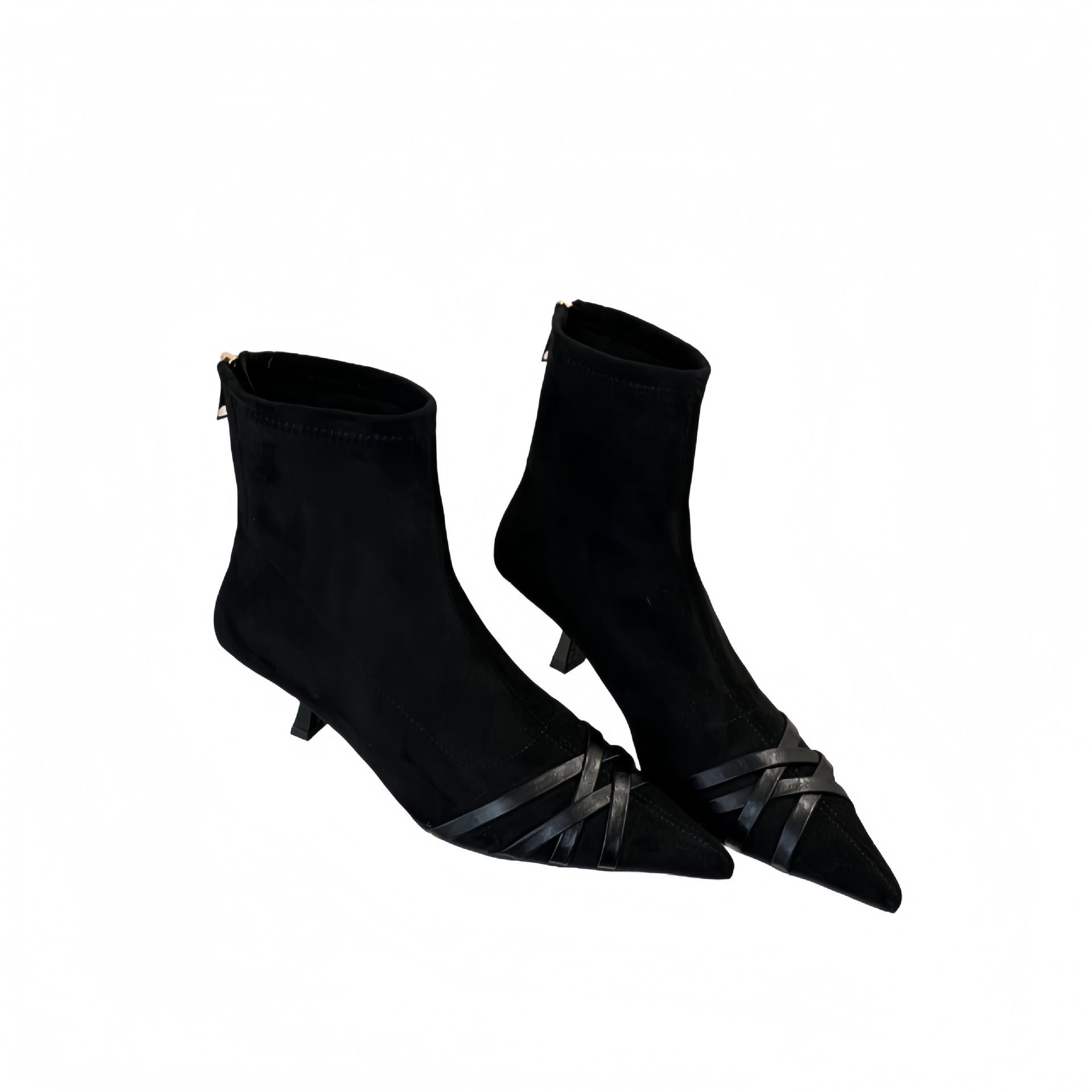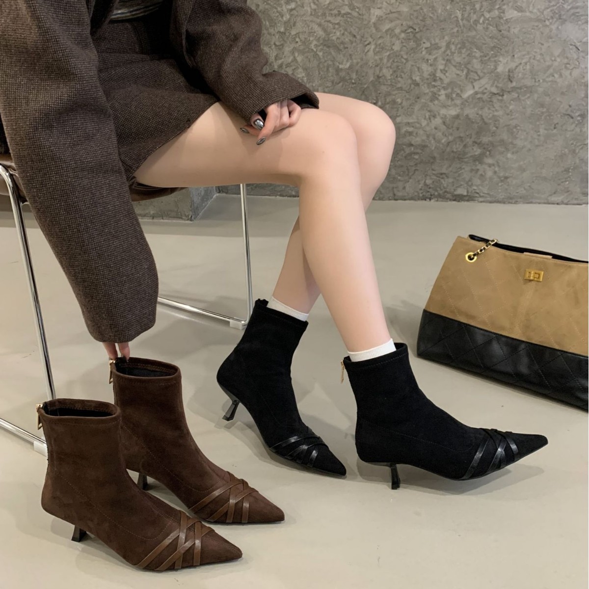 欧美时髦尖头短靴2025秋冬新款女靴绒面靴子短筒靴时尚百搭瘦瘦靴