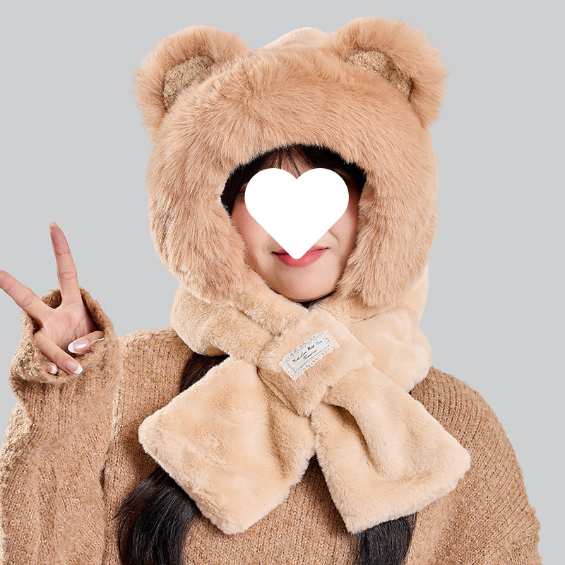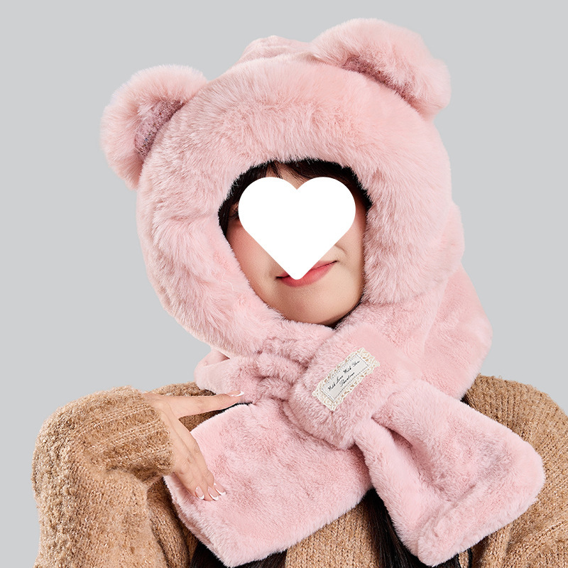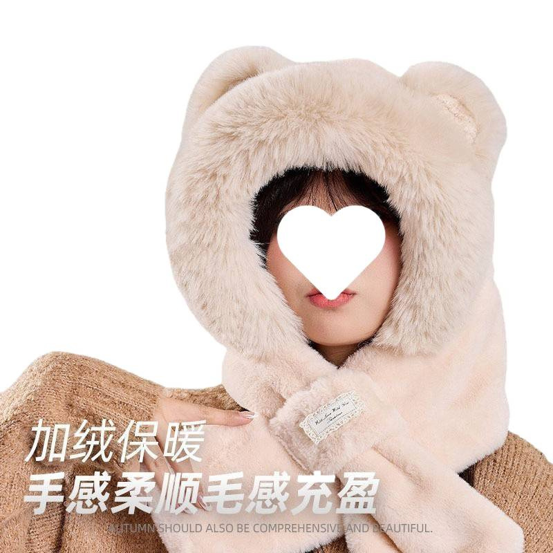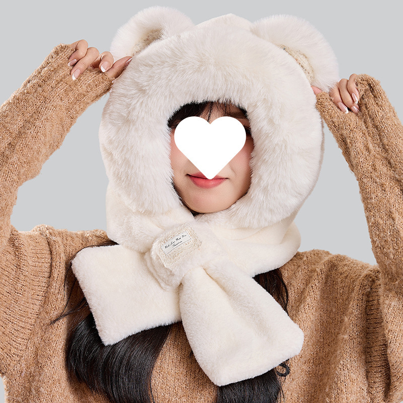 2025年秋冬季保暖帽子女款时尚围巾一体针显脸小护耳朵帽骑行抗冻