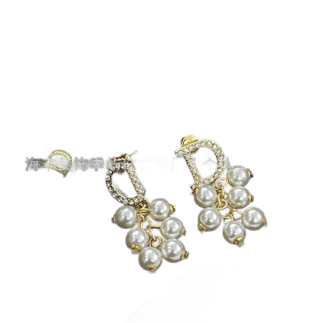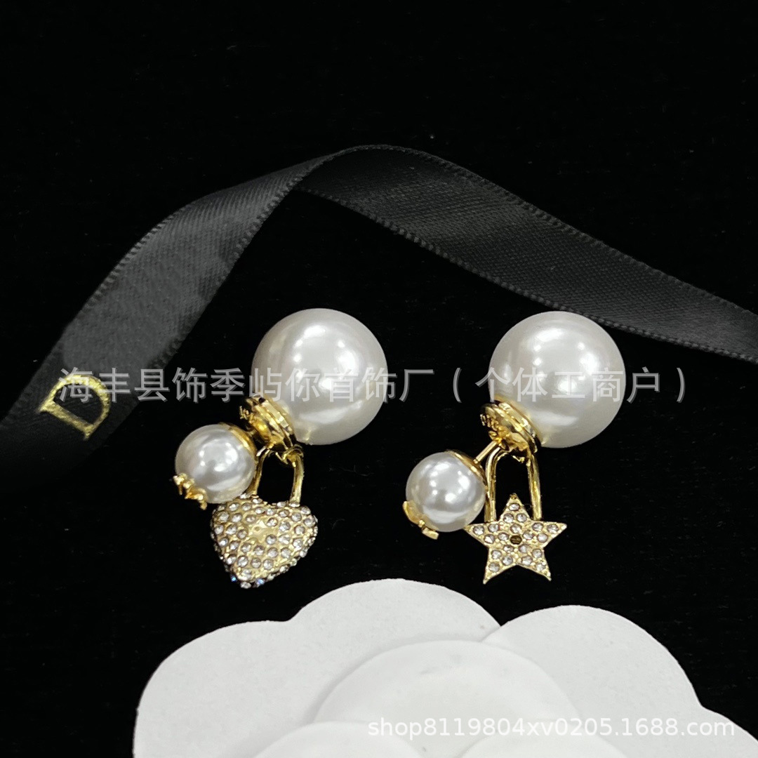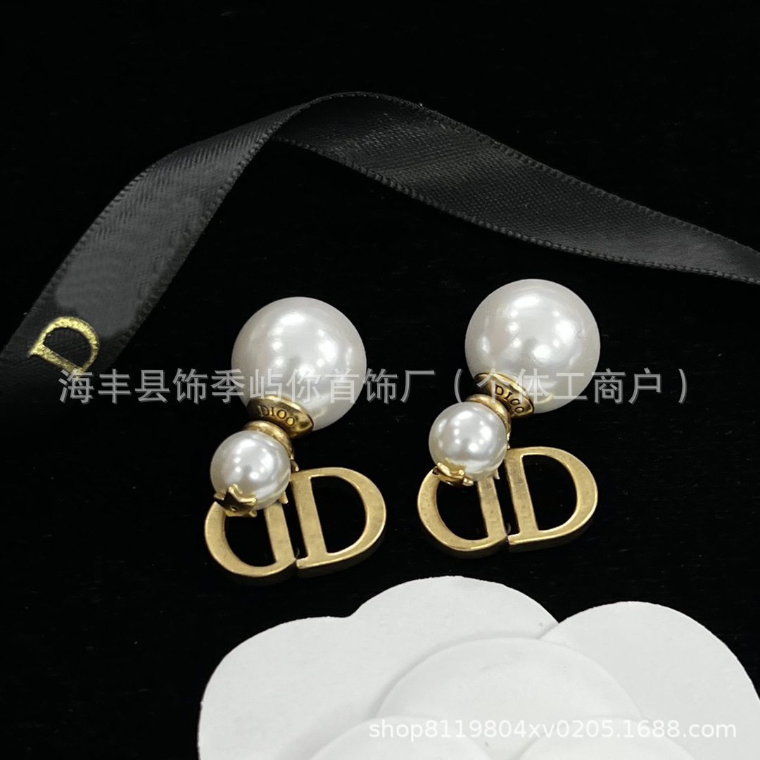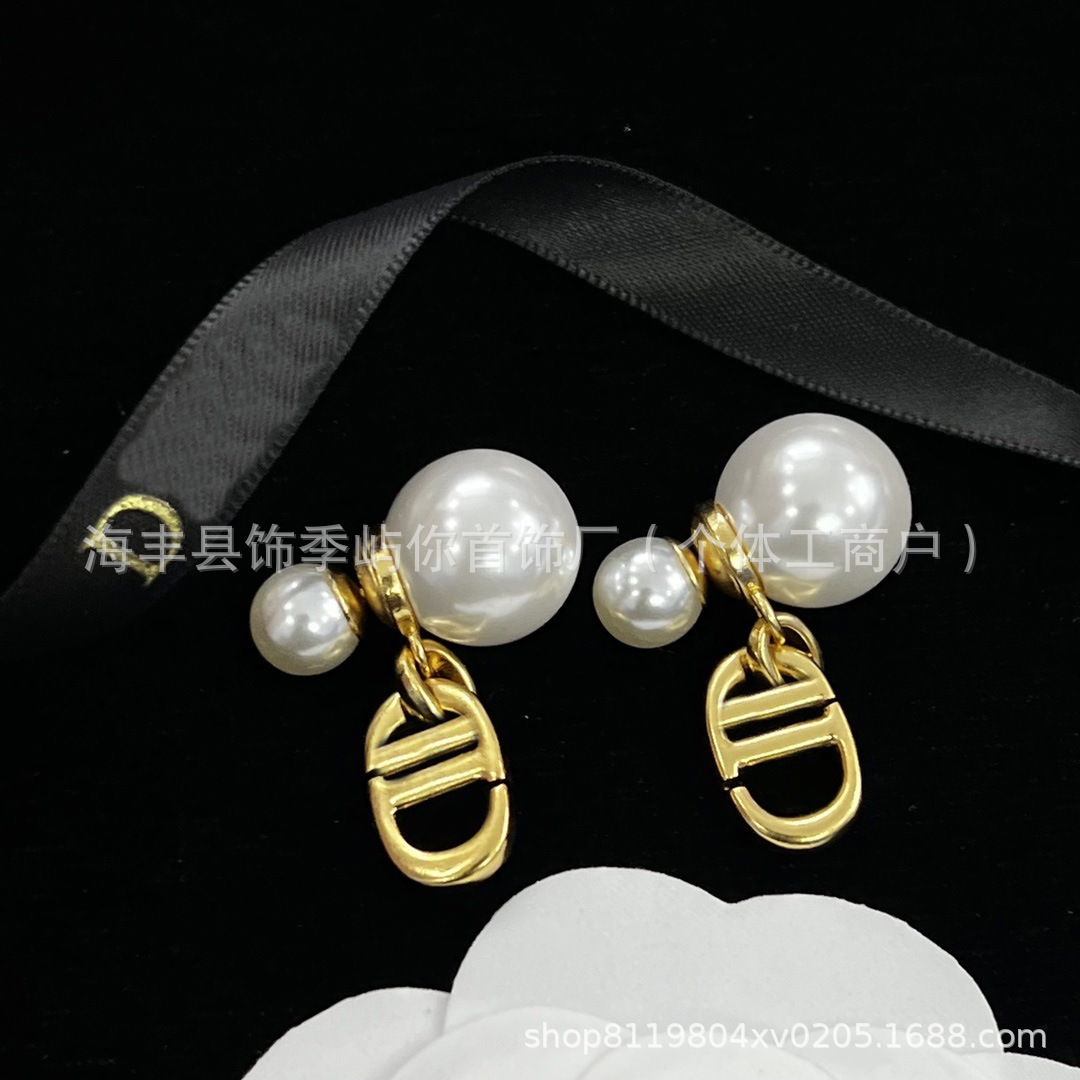 D家/迪家耳环CD字母前后珍珠耳钉系列女高质感网红同款耳饰批发