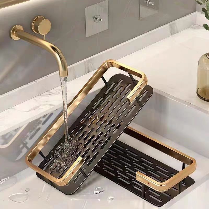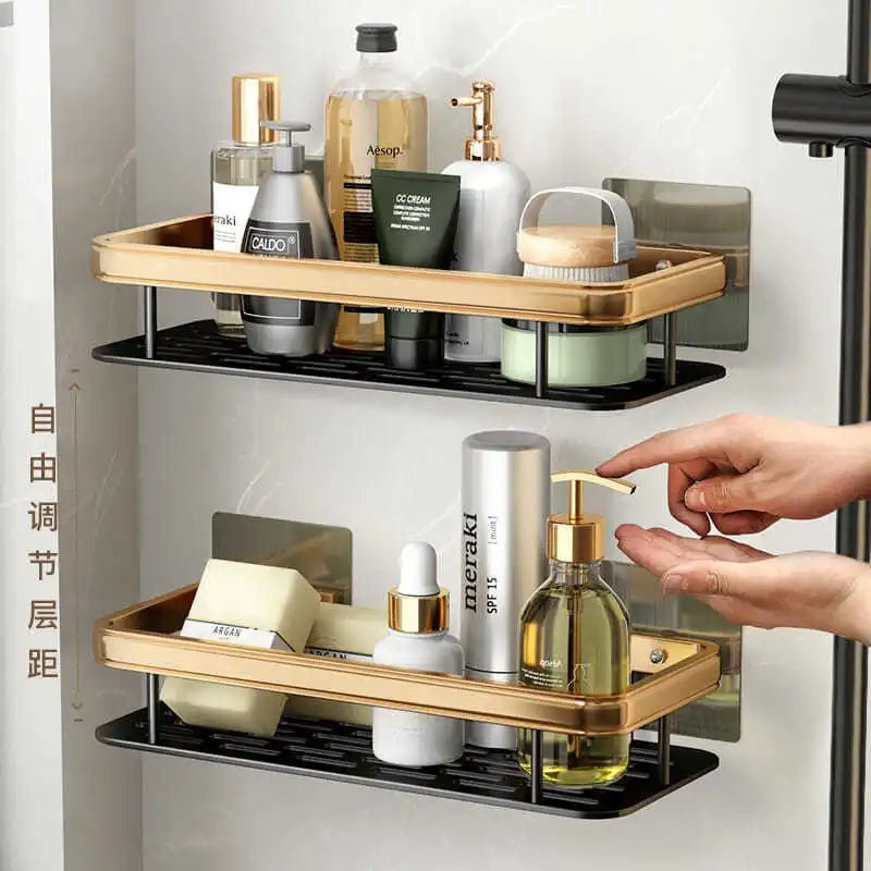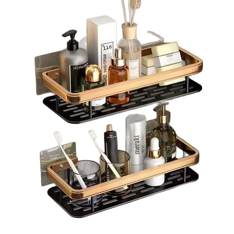 免打孔黑金太空铝长方置物架卫生间浴室洗漱台壁挂式多层收纳架子