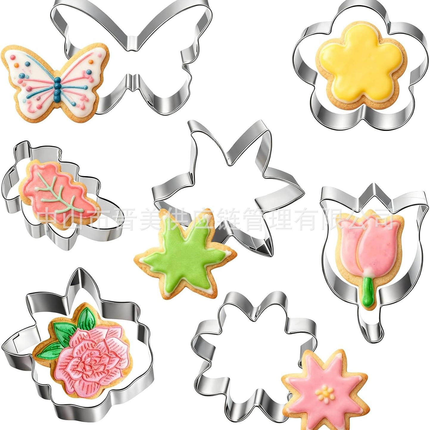 7件水仙花套装不锈钢饼干模具母亲节玫瑰花郁金香烘焙工具diy跨境