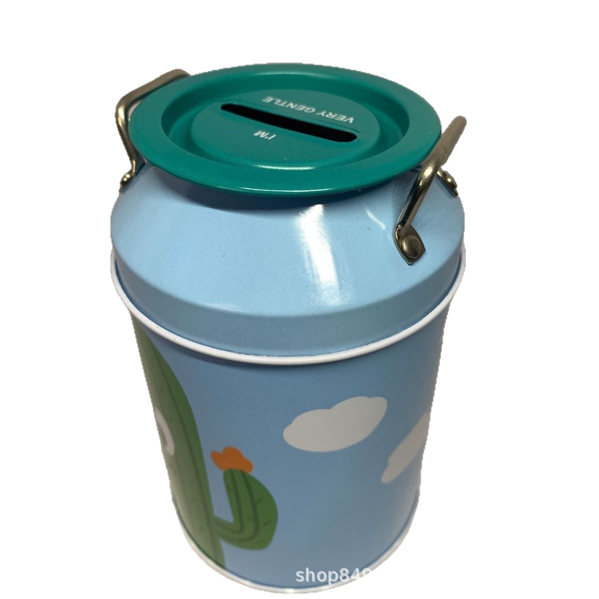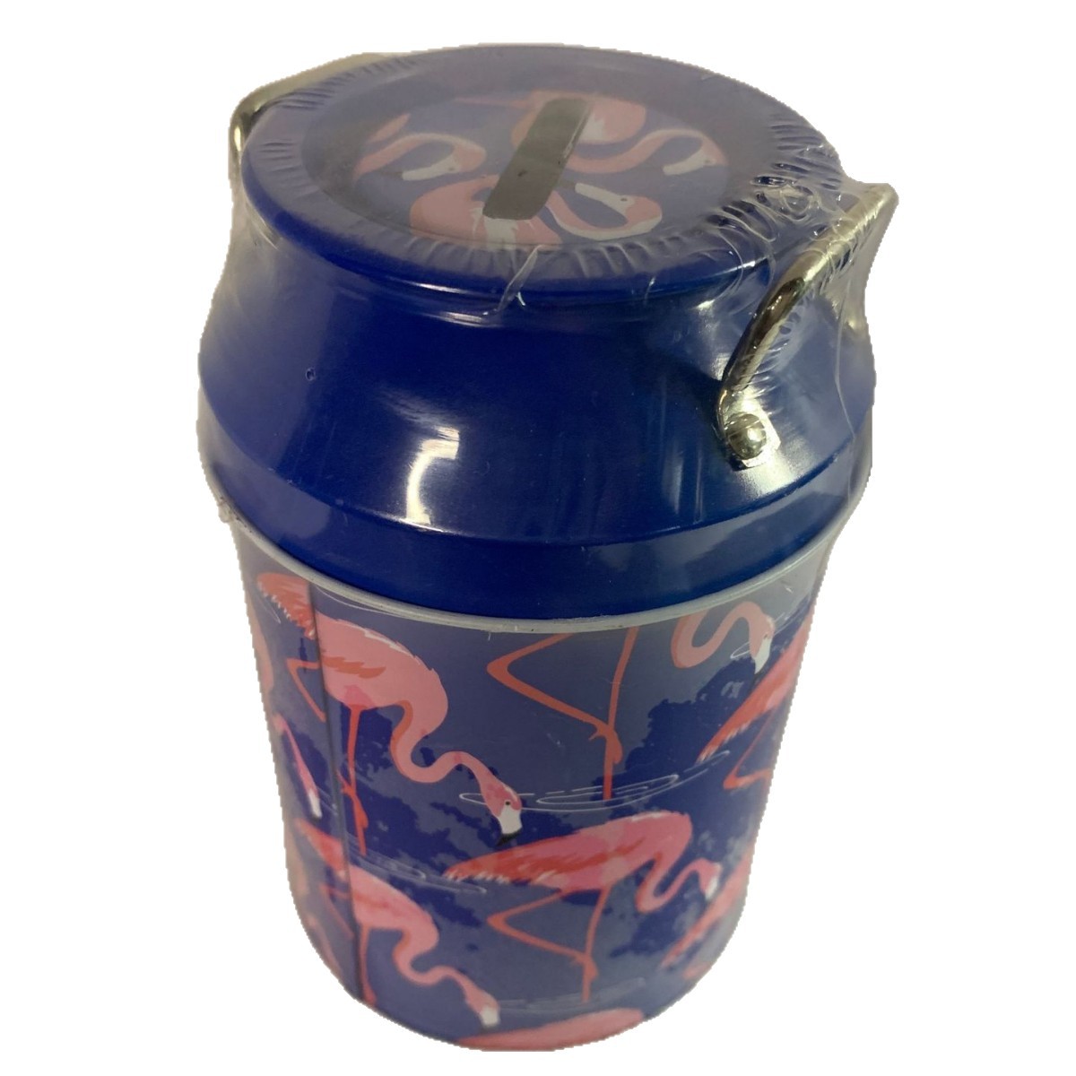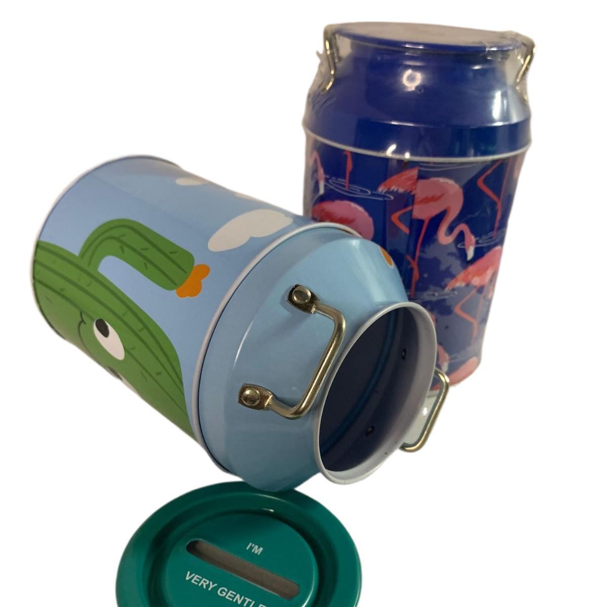 现货火烈鸟钱罐儿童硬币存钱罐卡通图案圆形投币收纳罐金属牛奶罐