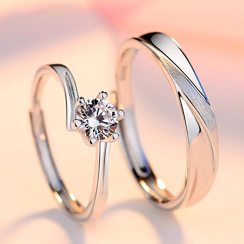 S925银情侣戒指简约轻奢相知相守对戒表白情人节生日礼物送男女友