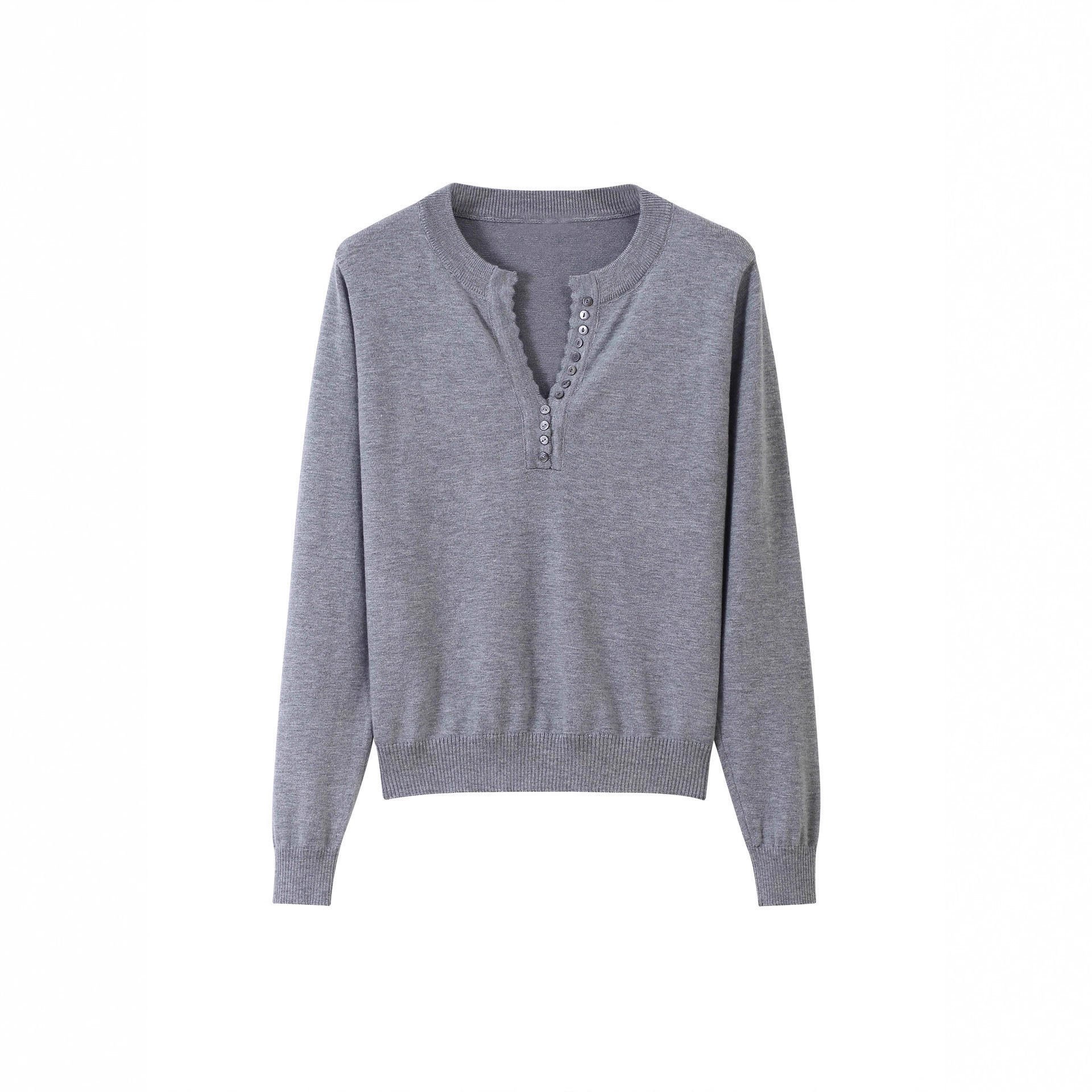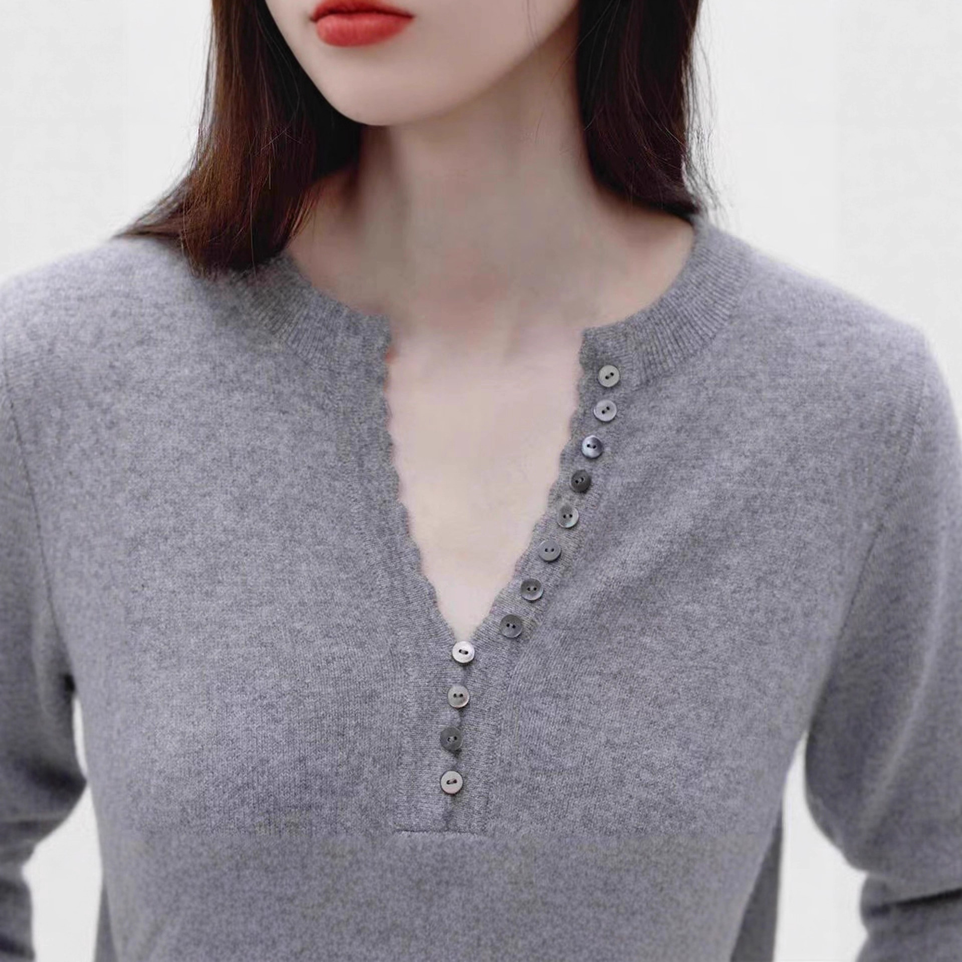 鄂X多斯文淇同款大牌明星都在穿25早秋格雷系半开圆领针织打底衫