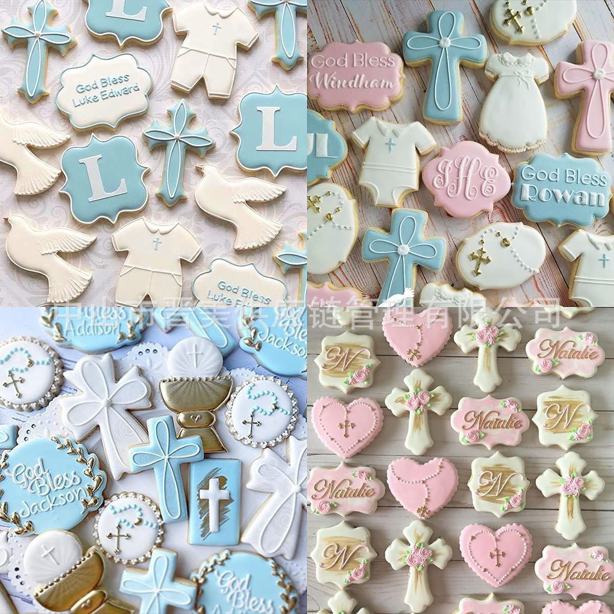 4件耶稣鱼套装不锈钢饼干模具洗礼平尾鱼十字架糖霜烘焙工具跨境