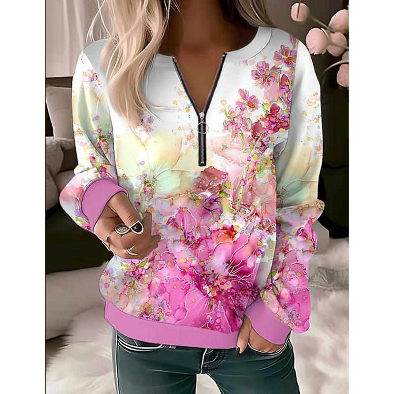 2独立站亚马逊跨境热卖秋冬新款印花V领拉链宽松Polo衫