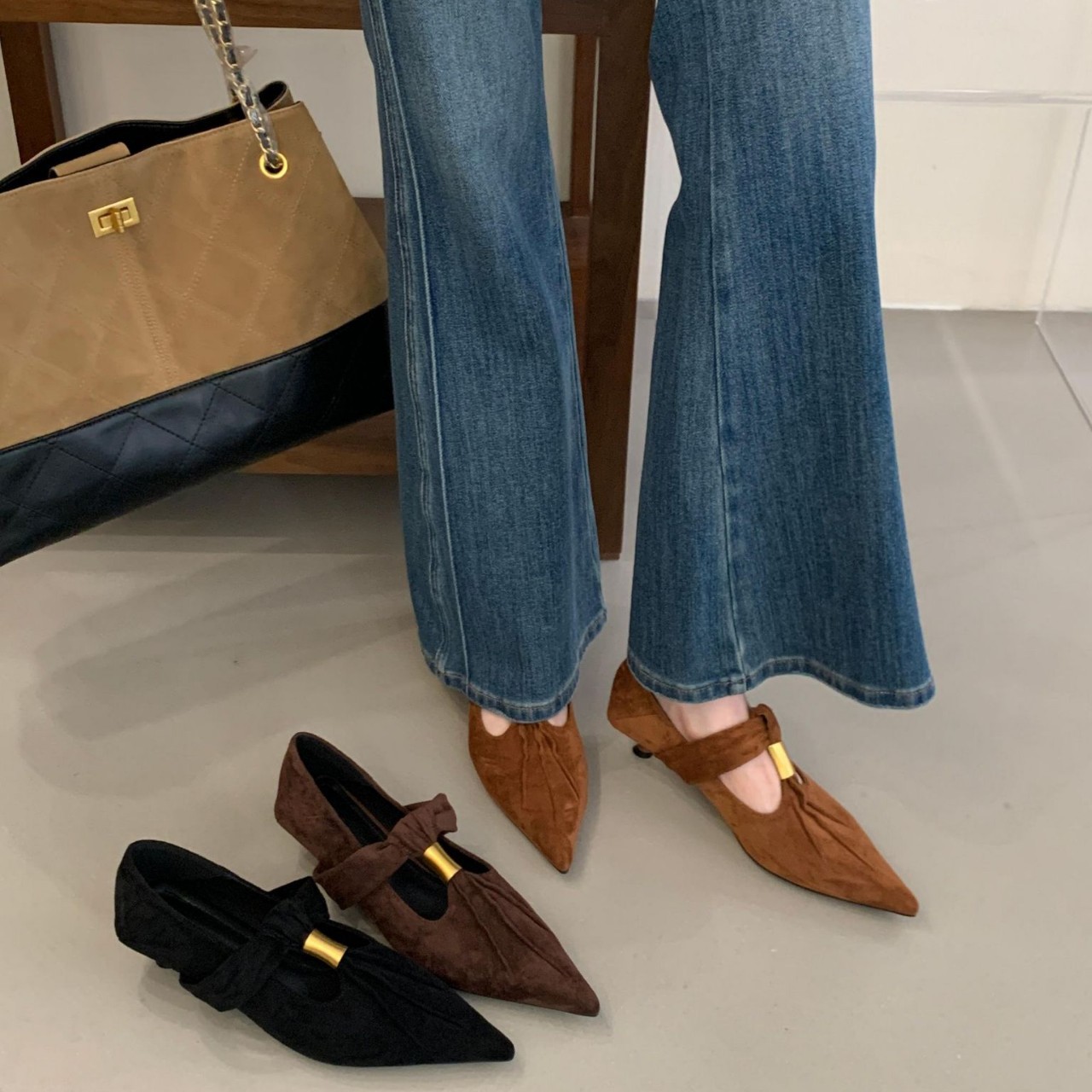 2025秋冬显瘦法式复古深口鞋绒面猫跟尖头小香风玛丽珍时尚女单鞋