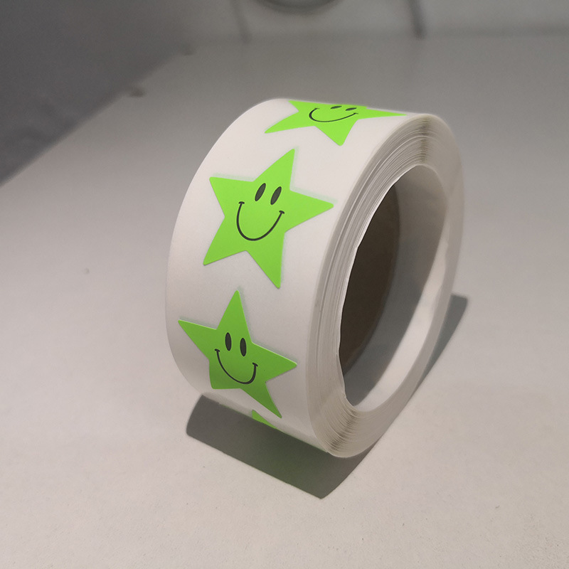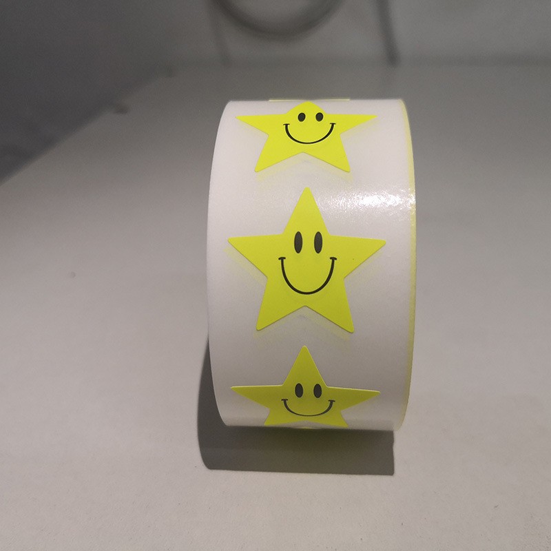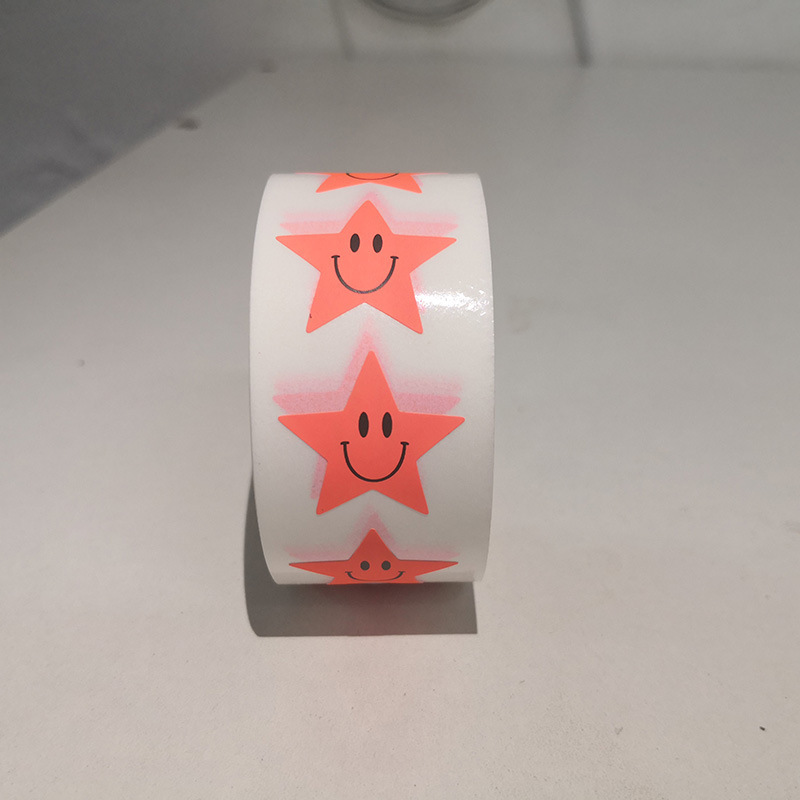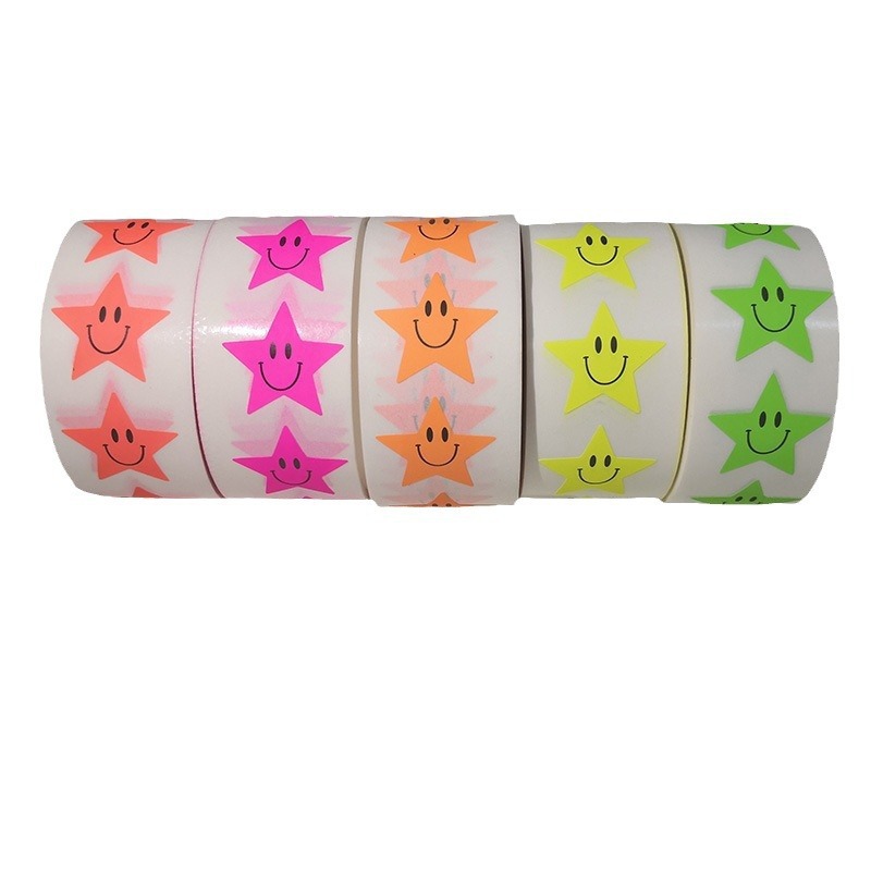 跨境现货1英寸荧光彩色亮色彩虹五角星笑脸微笑diy不干胶标签贴纸