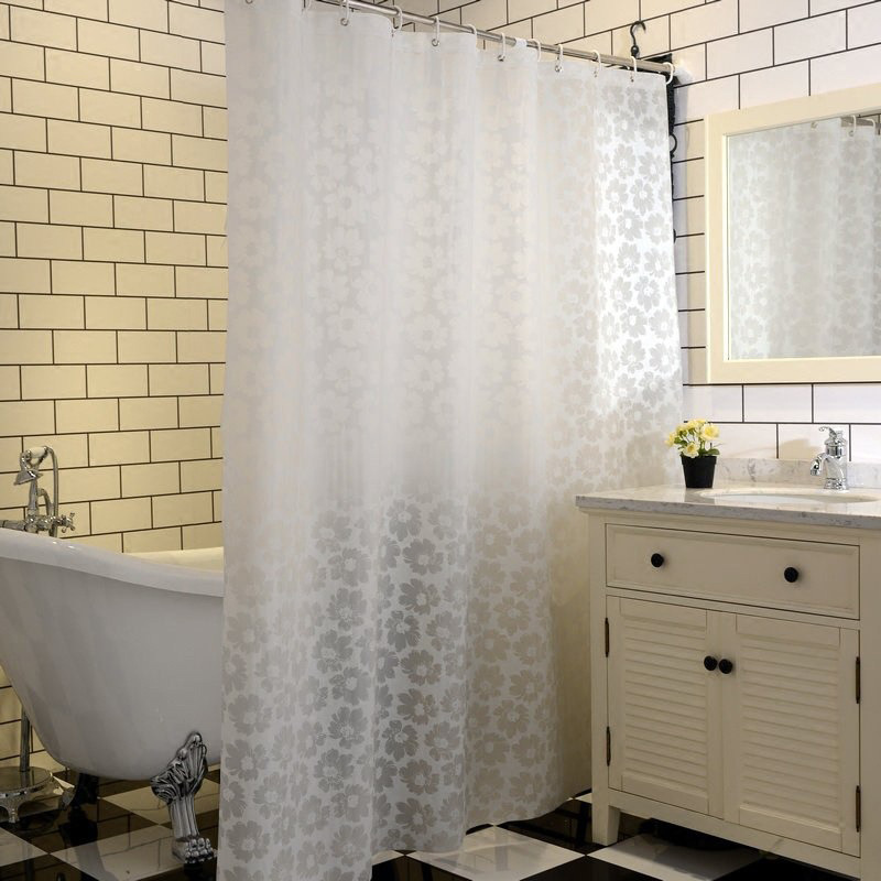跨境peva浴帘素蕊透纱简约防水防霉卫生间浴室帘 隔断帘浴室窗帘