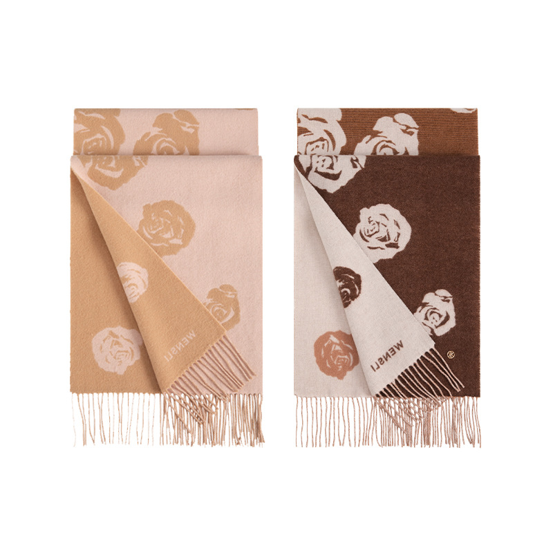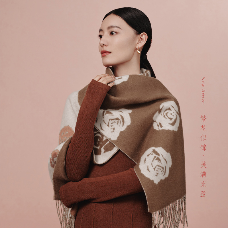 万事利双色围巾秋冬新款围巾纯色羊绒女围脖披肩现货气质锦绣满堂