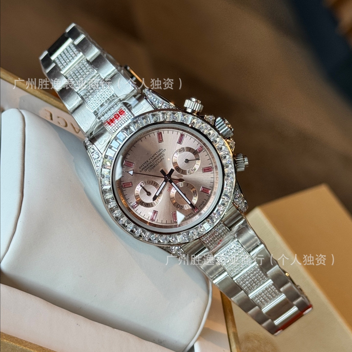 外贸劳家迪通拿彩虹迪女表镶满钻多功能计时精钢女石英表钢带批发