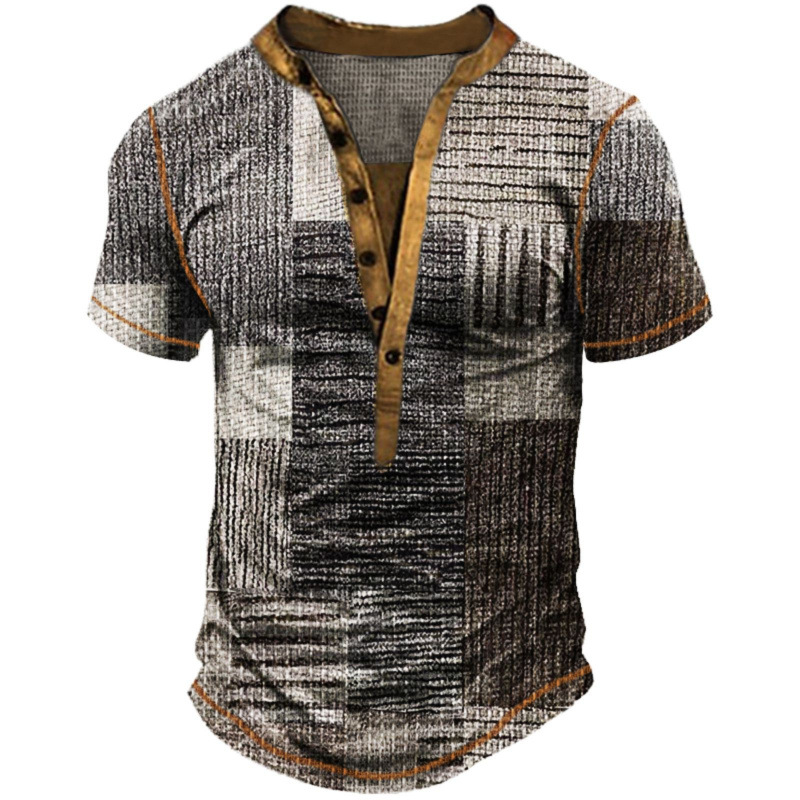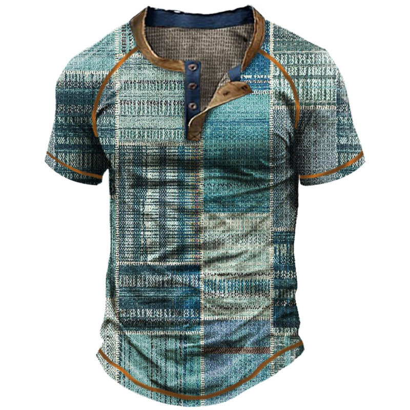 外贸3d印花T恤短袖男士三粒扣亨利衫夏季休闲短袖上衣