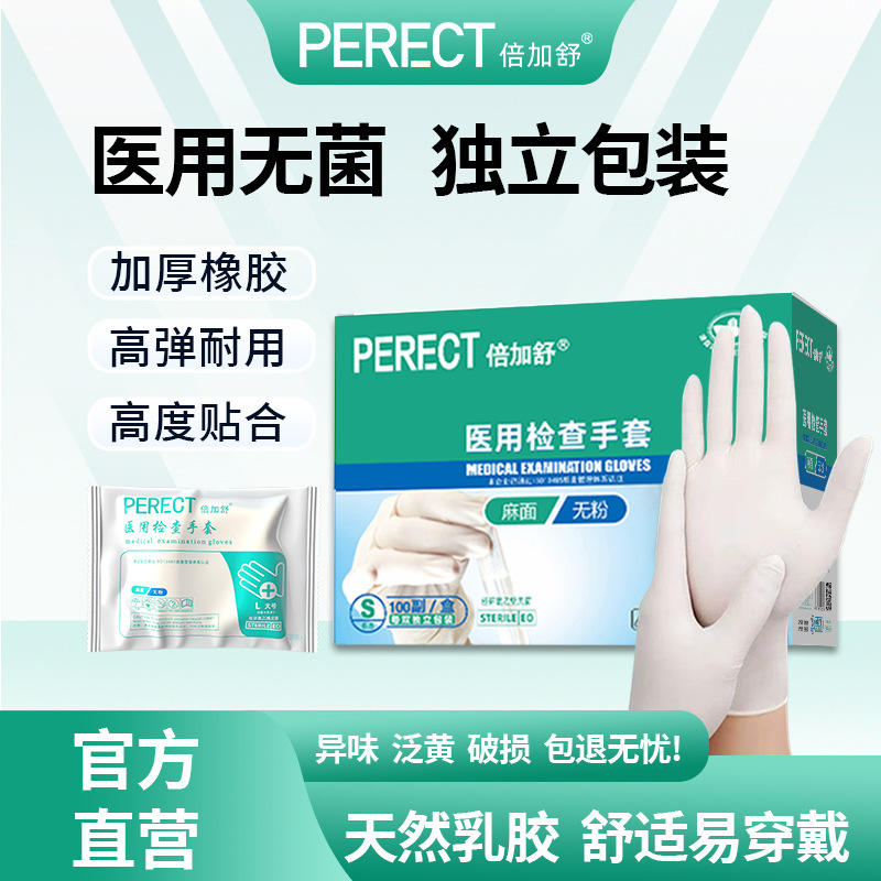 厂家直销倍加舒医用检查手套灭菌单双独立包装乳胶一次性手套