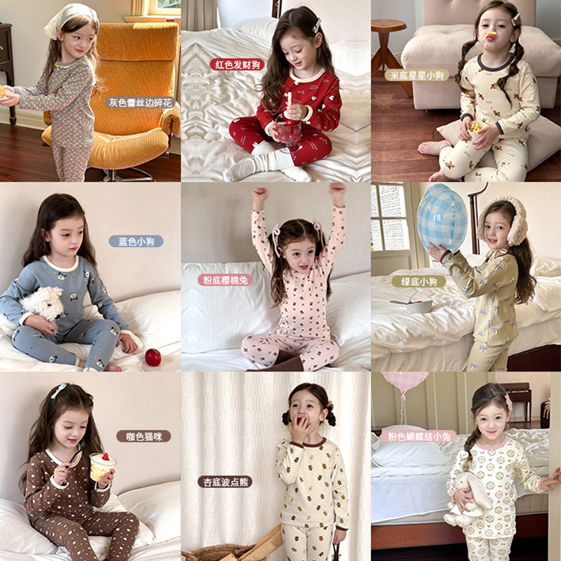 长袖儿童睡衣男女童品质无骨A类秋衣秋裤羊毛拉架卡通家居服批发