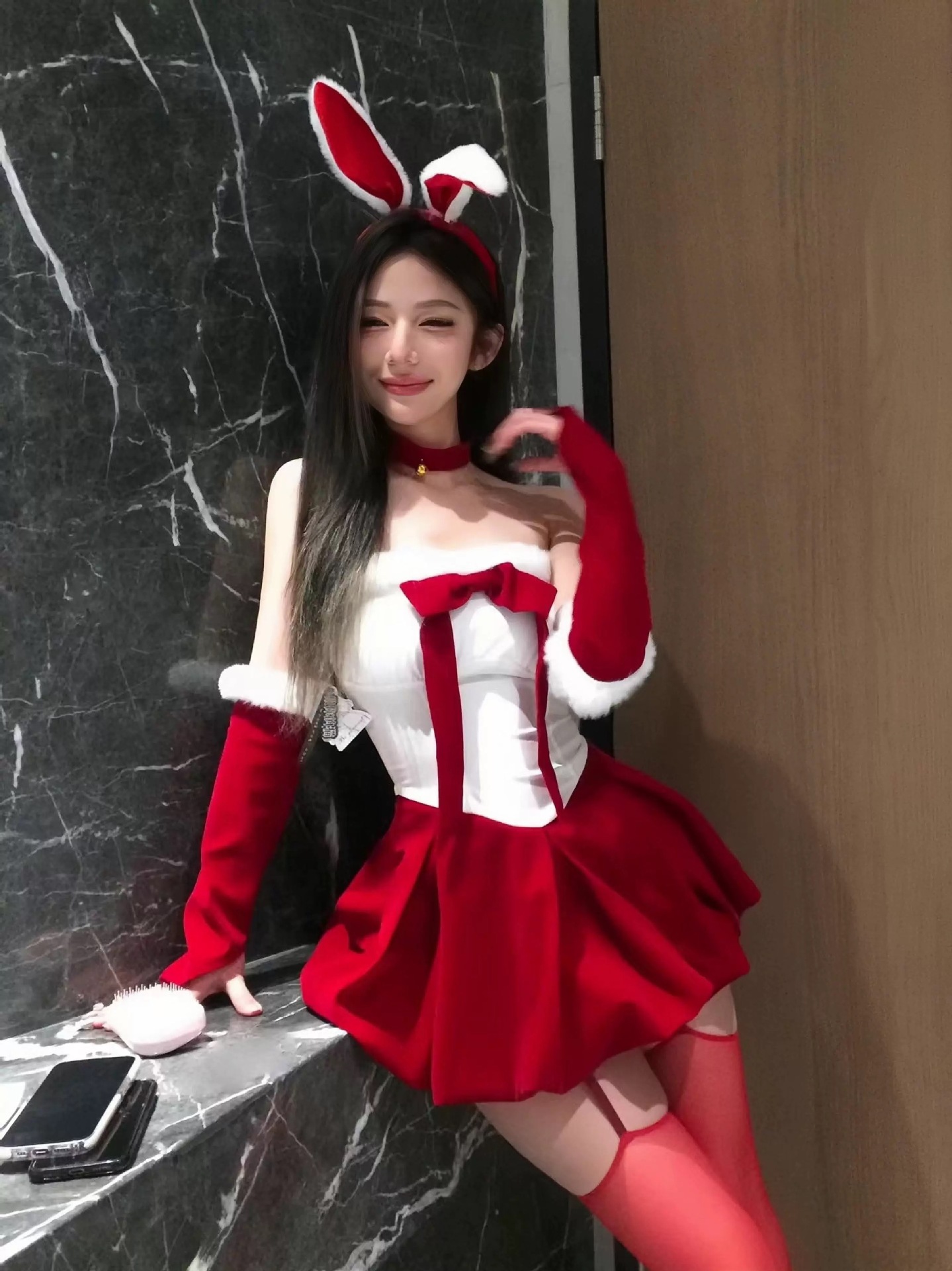 颜色(更立体)红色套装—含连衣裙发箍颈环手套 送饰品尾巴