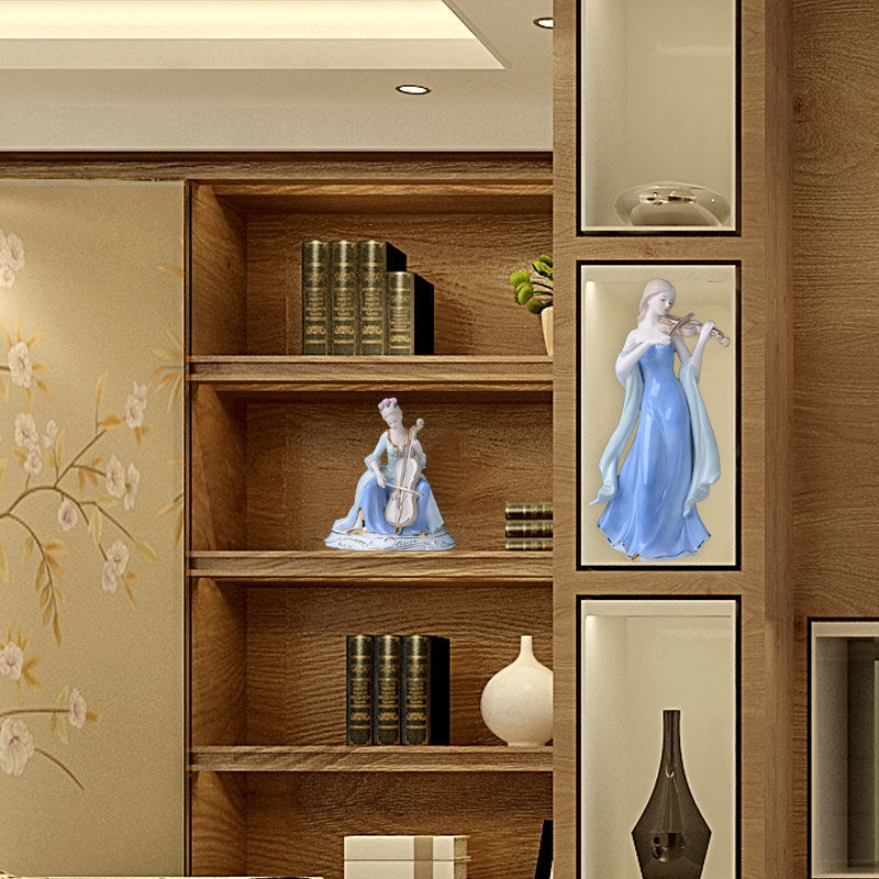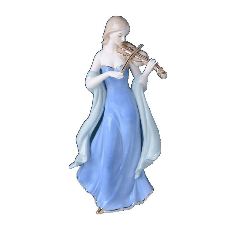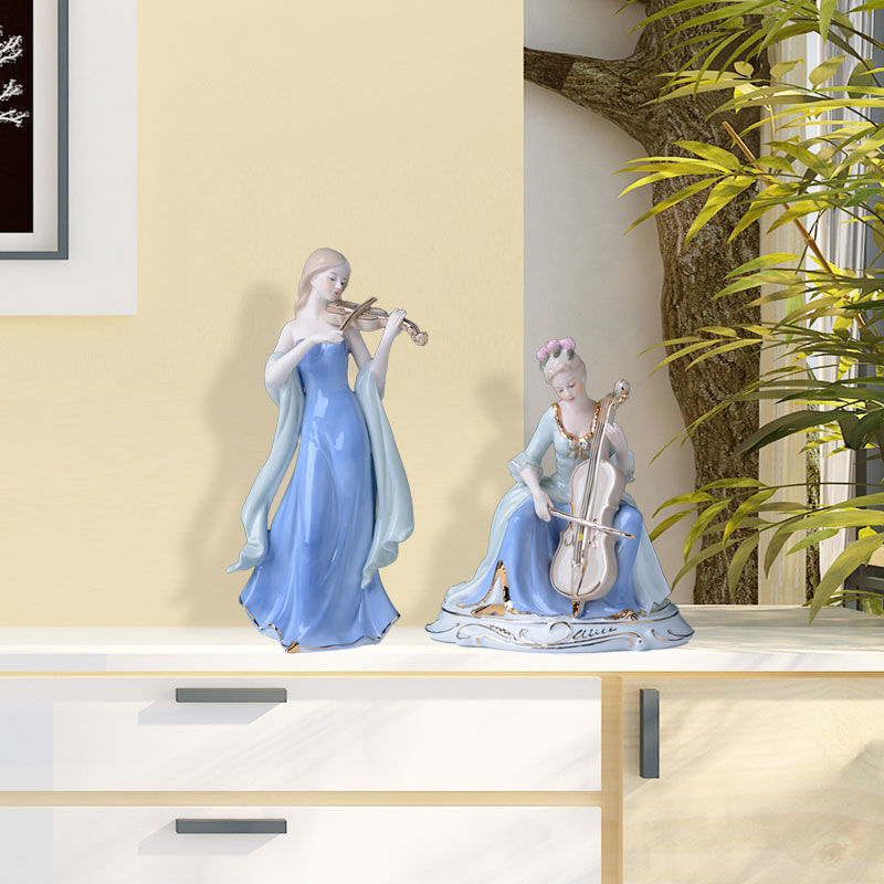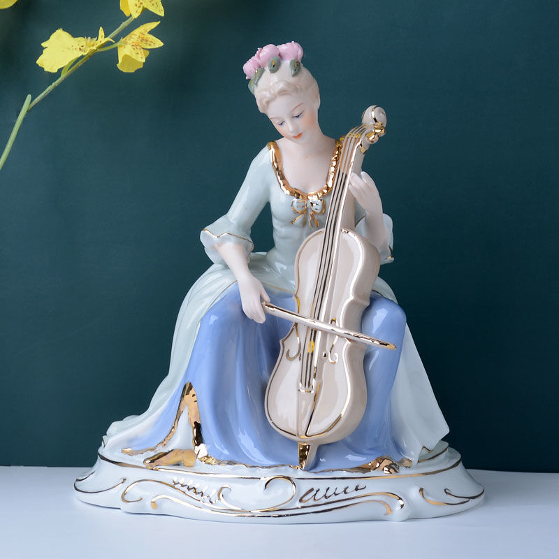 【99%率 新款摆件/小提琴女孩陶瓷人物艺术品摆件中式轻奢家居∑