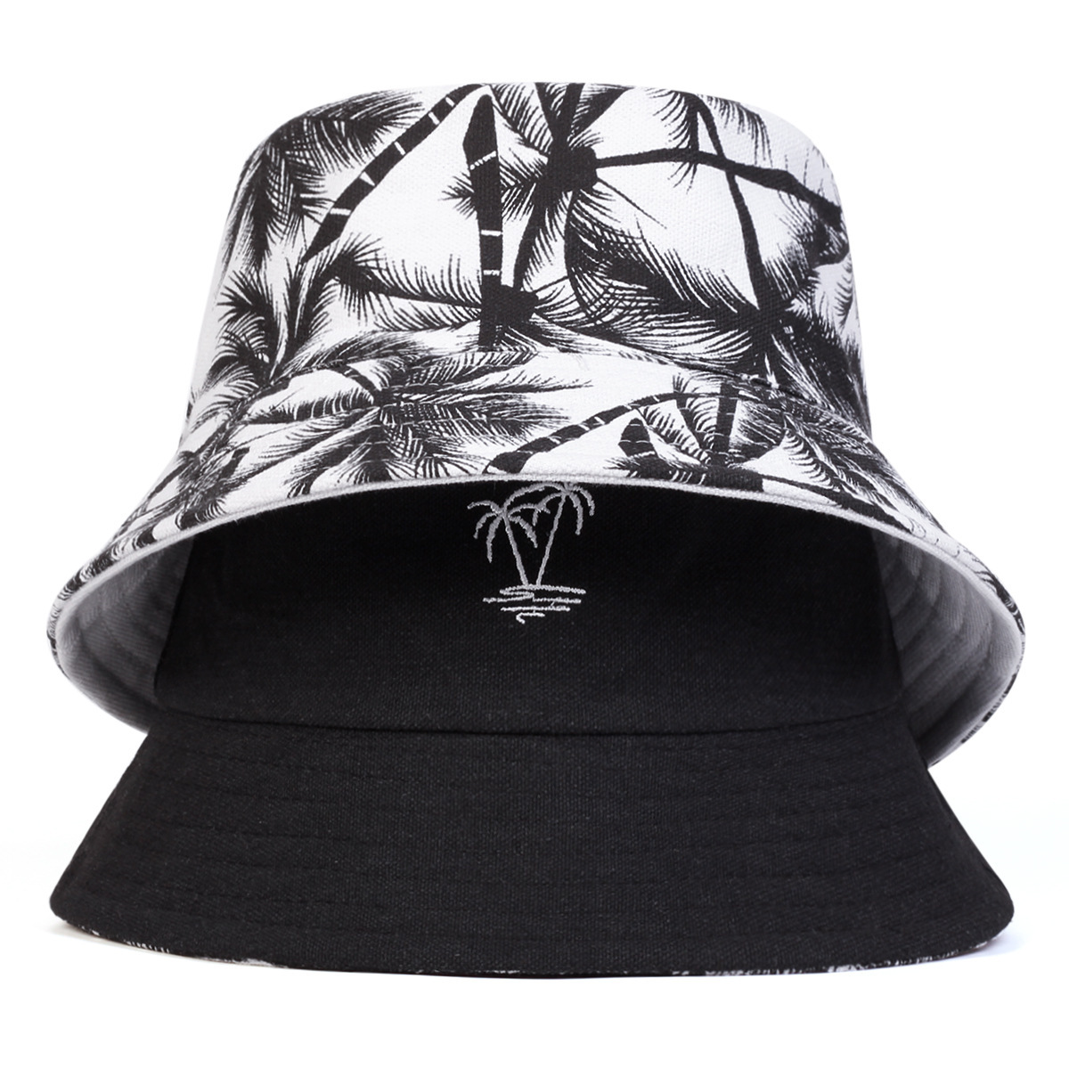 大帽檐渔夫帽树叶数码印花盆帽韩版户外遮阳帽防晒帽宽檐ins风