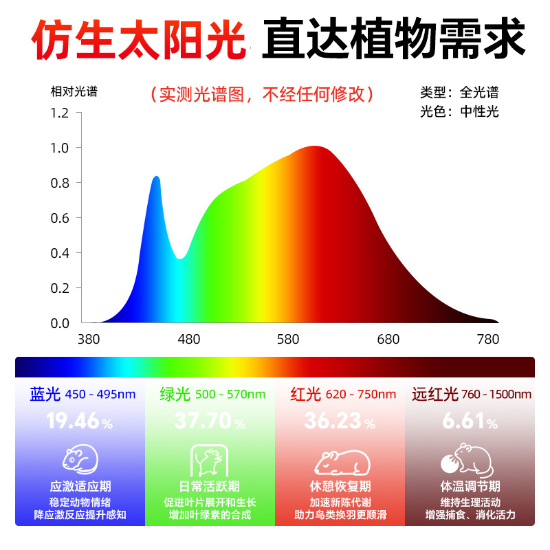| 颜色 | 全光谱太阳光-100W暖光-呵护健康成长 | 颜色 | 全光谱太阳光-100W中性光-呵护健康成长 |