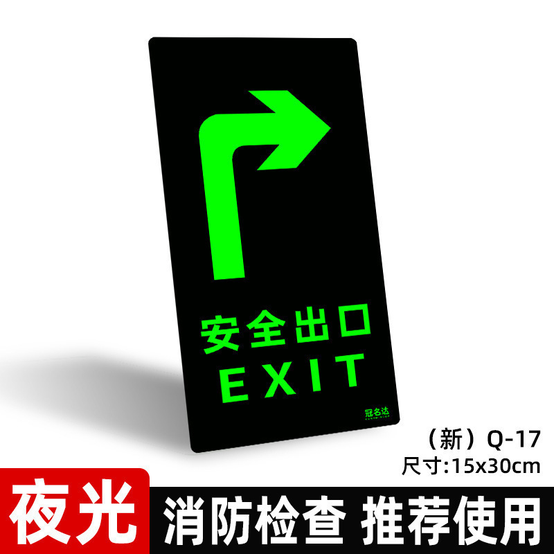 出口指示牌消防标识标牌逃生通道地贴警示夜光墙贴小心台阶地滑灭