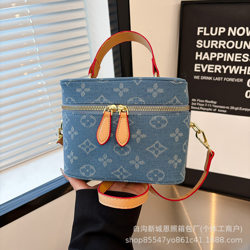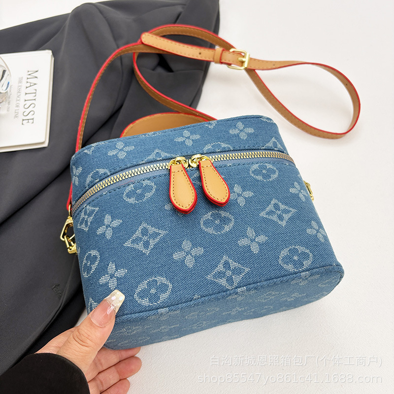2025新款包包单肩包时尚百搭斜挎包驴家丹宁牛仔包老花化妆包收纳