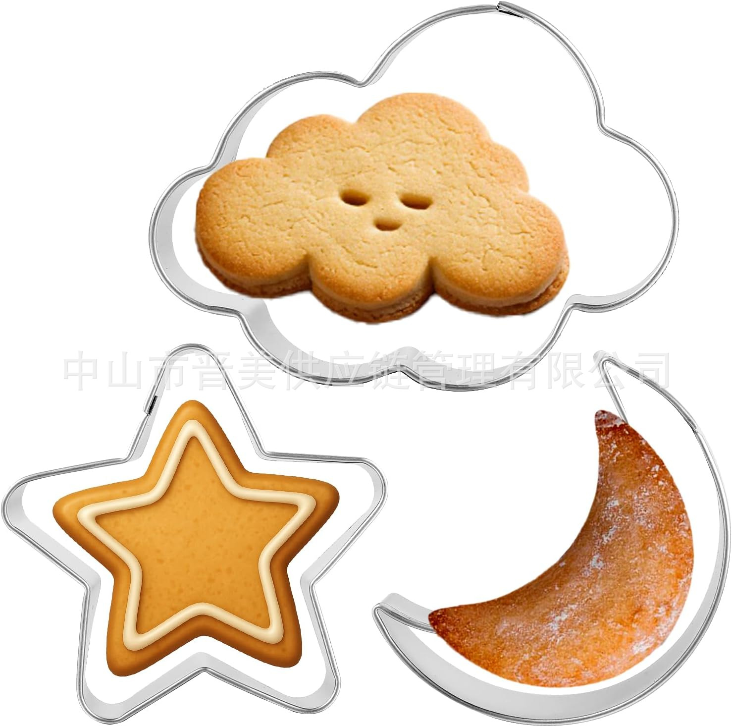 3件云朵星星月亮套装不锈钢饼干模具天气系列按压式烘焙工具跨境