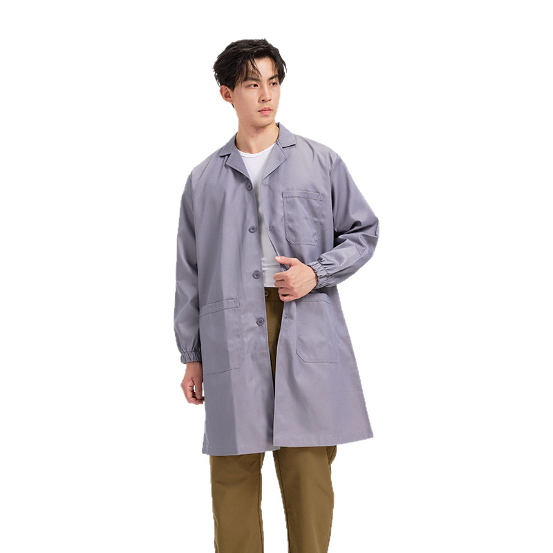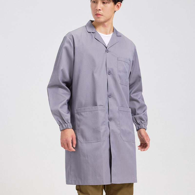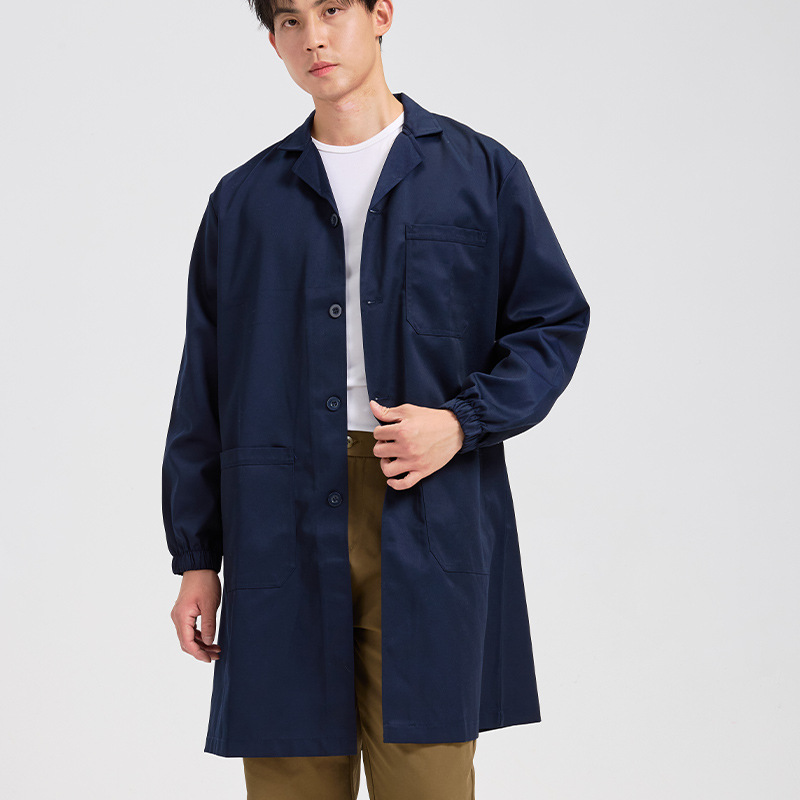 全工艺涤棉大褂厚纱卡耐磨耐用后背下端开叉绣印字长款工作服