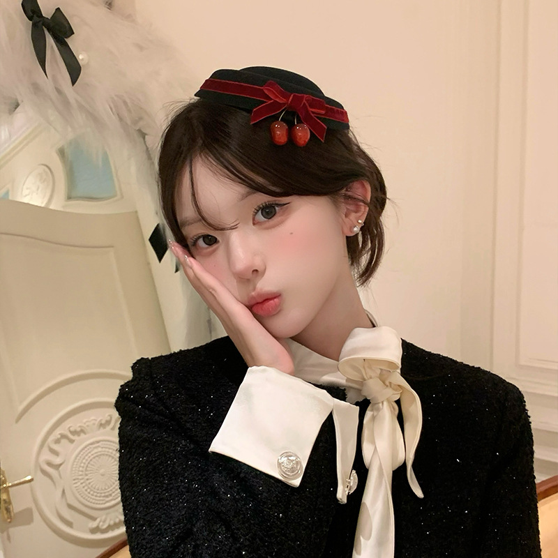 圣诞节氛围蝴蝶结樱桃小礼帽圣诞帽子发饰头饰发夹发卡饰品装扮