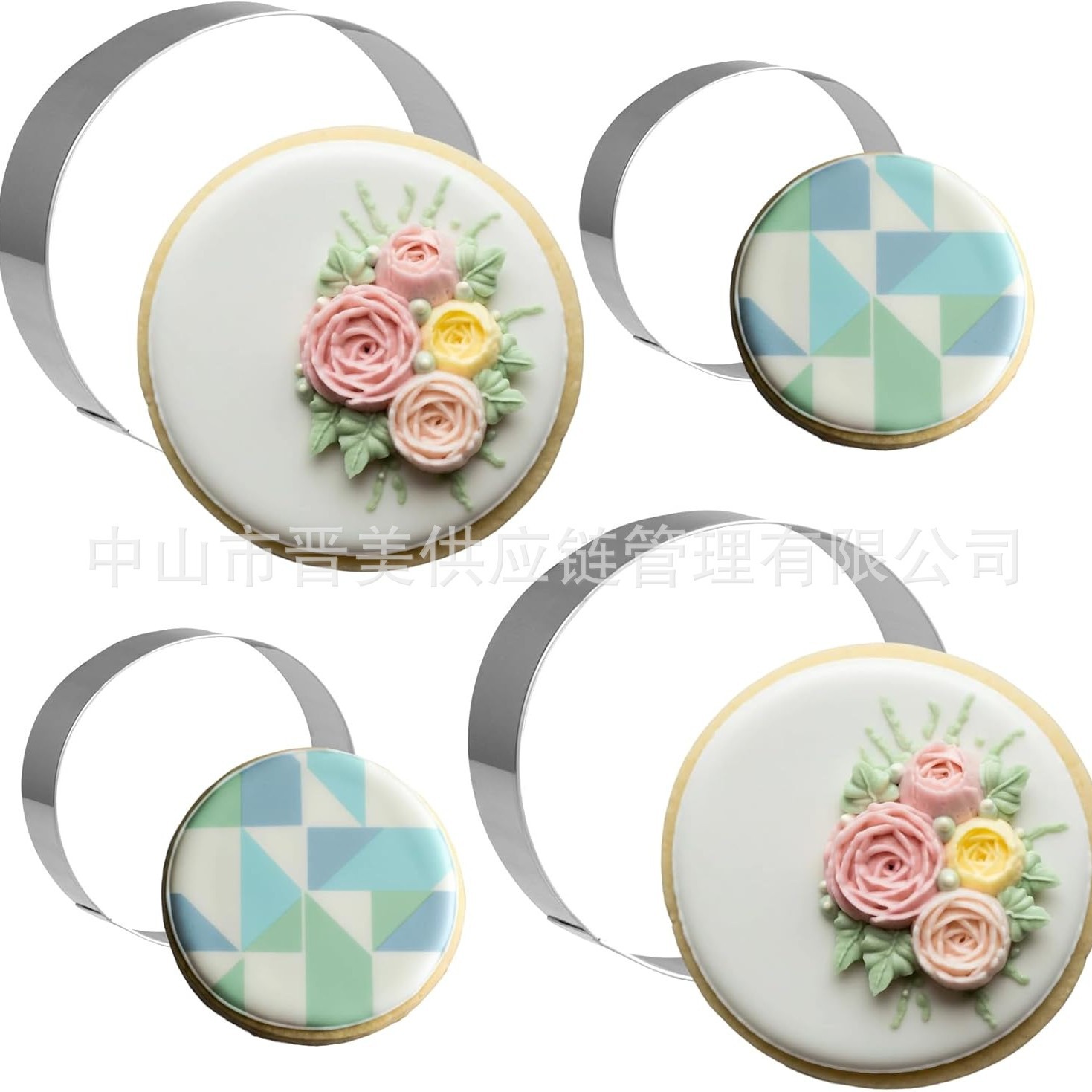 4件几何图形套装不锈钢饼干模具圆形正方形按压式烘焙工具diy跨境