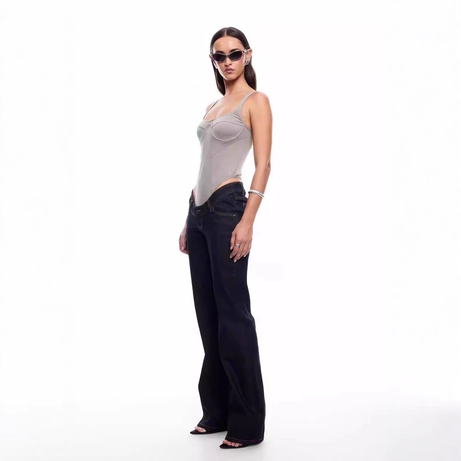 Lioness腻腻同款美式复古风显瘦修身小众设计低腰蓝色牛仔裤长裤