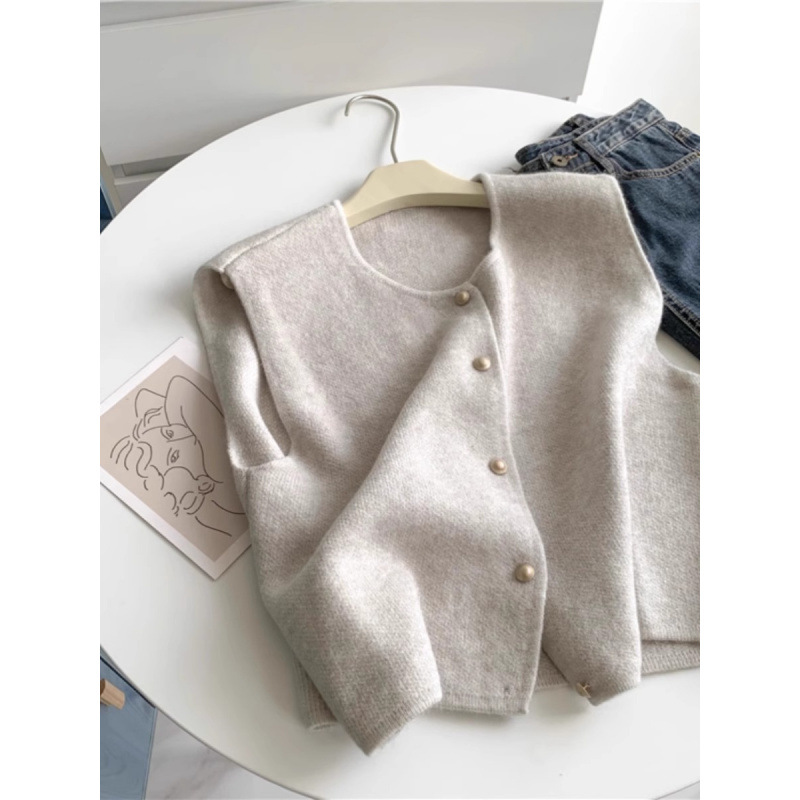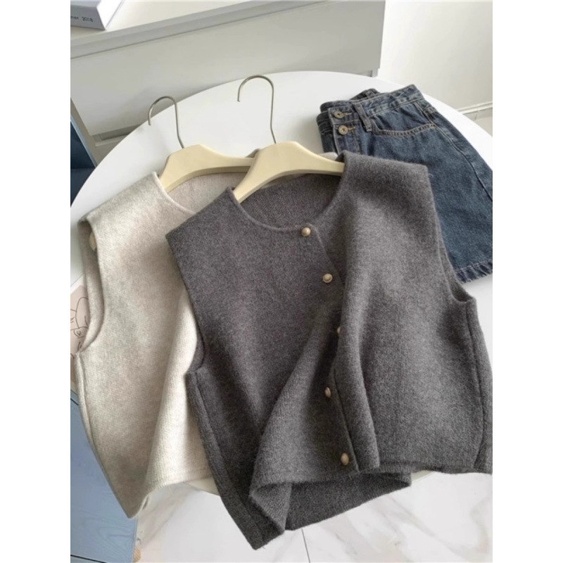 温柔系单排扣金属扣气质百搭针织马甲背心女春秋叠穿内搭坎肩上衣