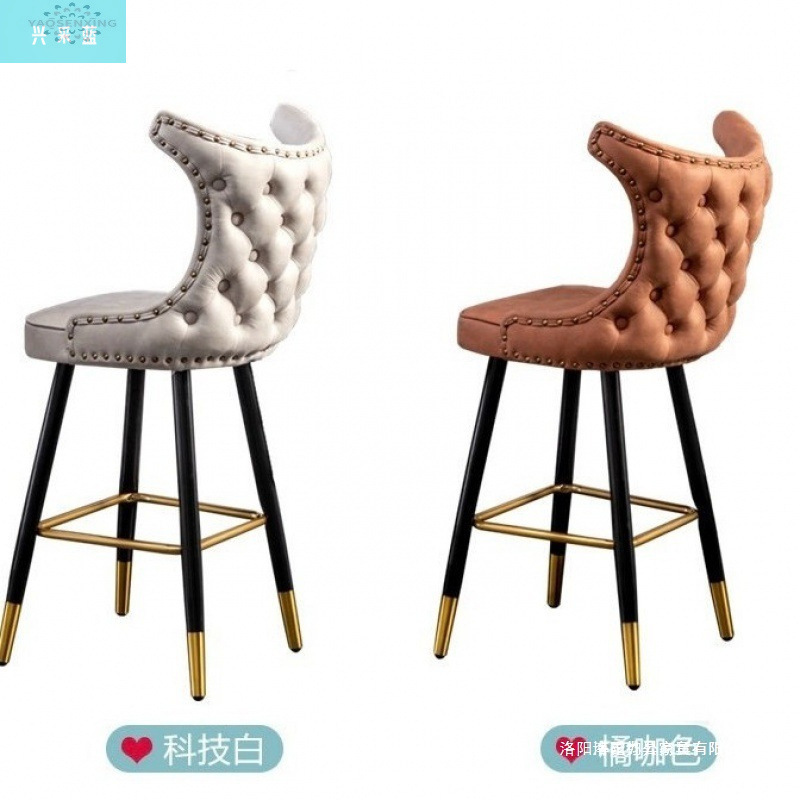 美式轻奢餐厅吧台椅家用靠背科技布铁艺高脚凳时尚网红酒吧椅