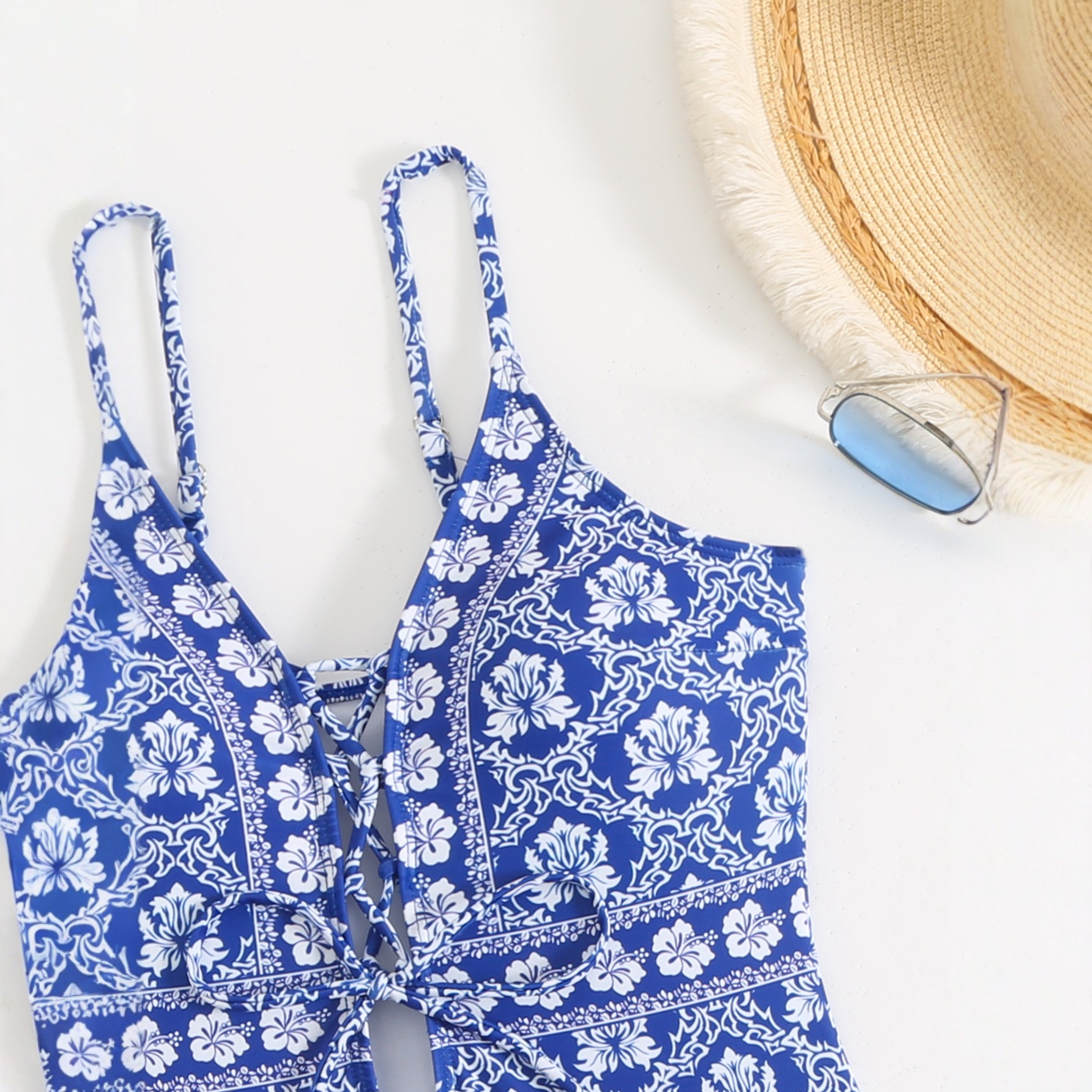 2026新款欧美跨境亚马逊女士连体印花露背时尚设计可调节肩带泳衣