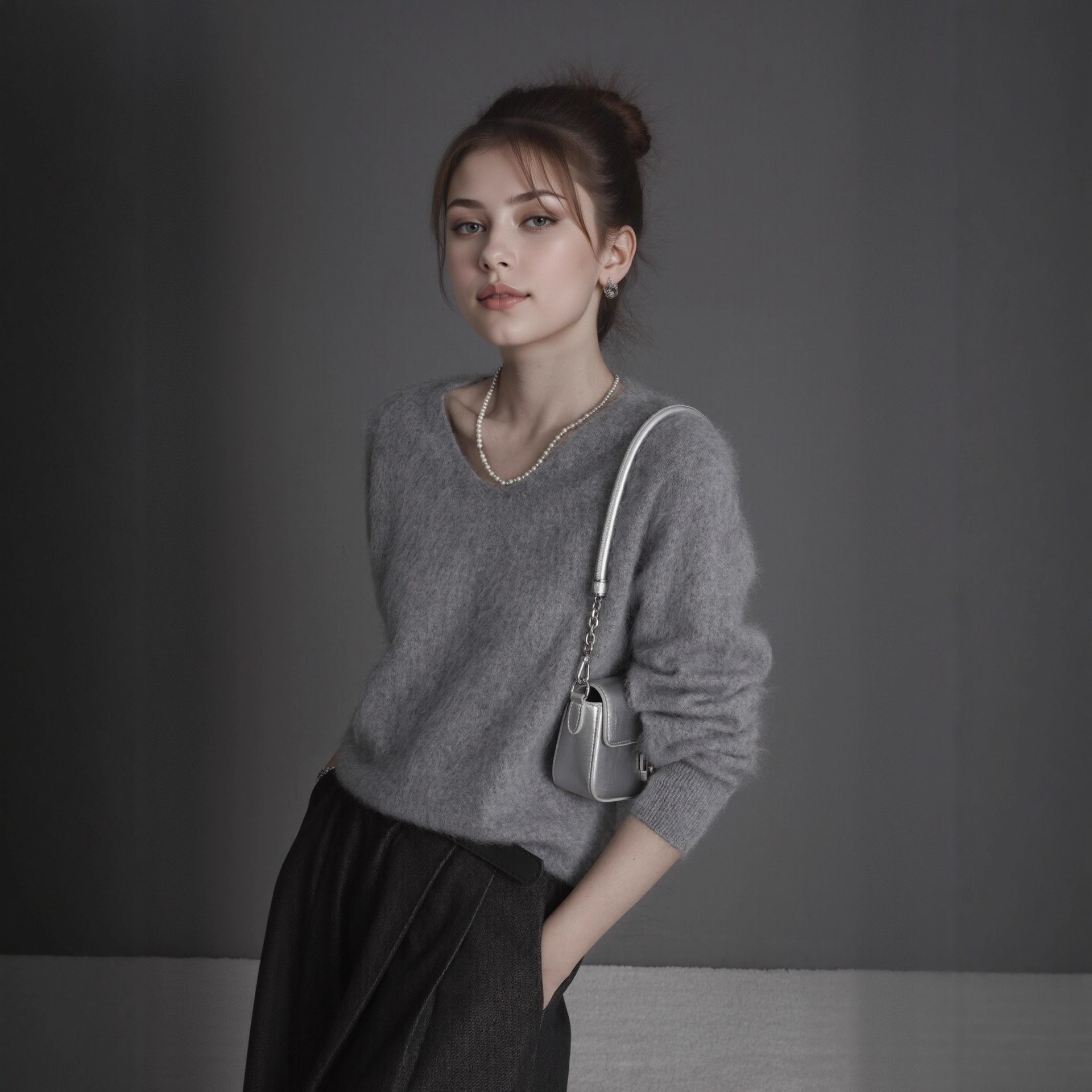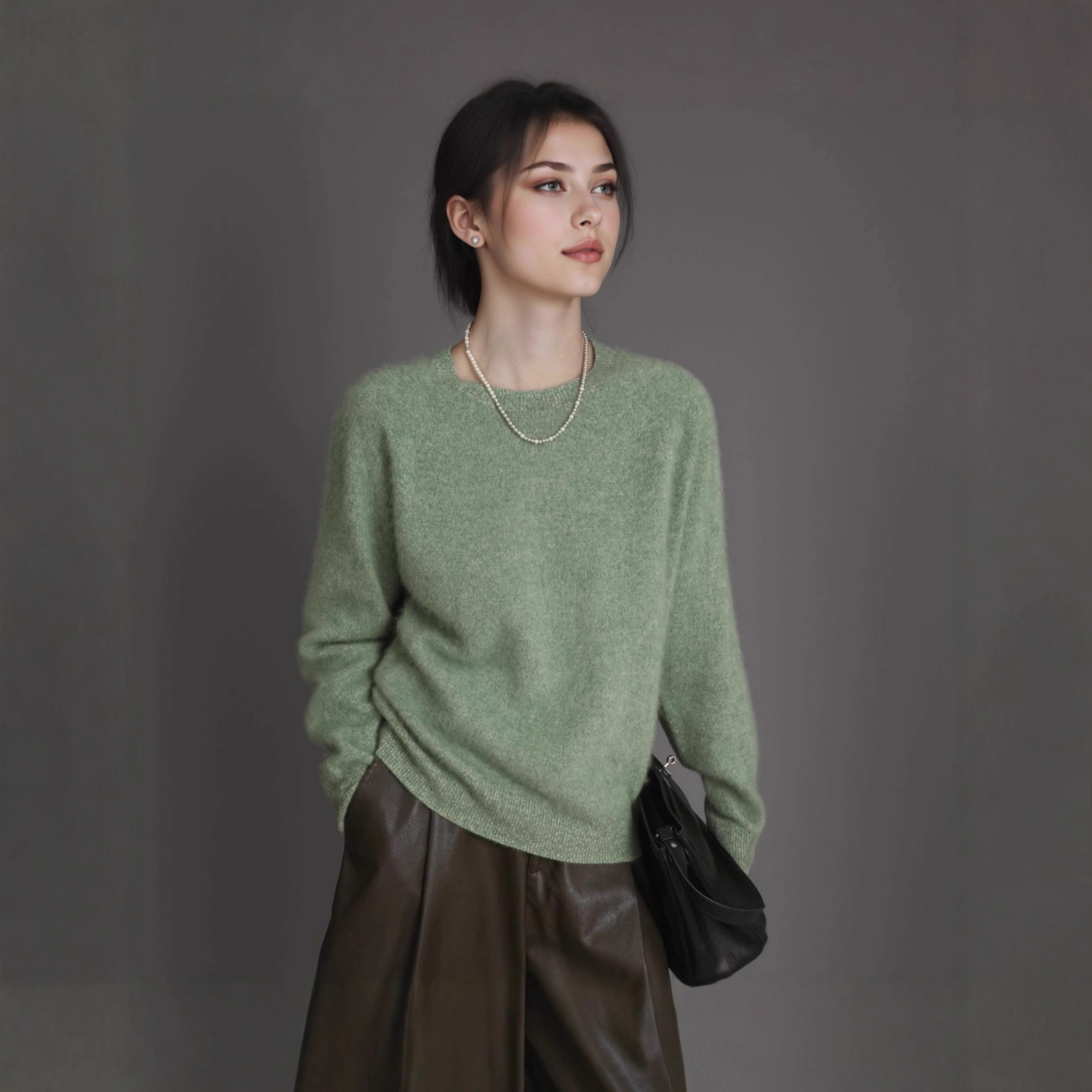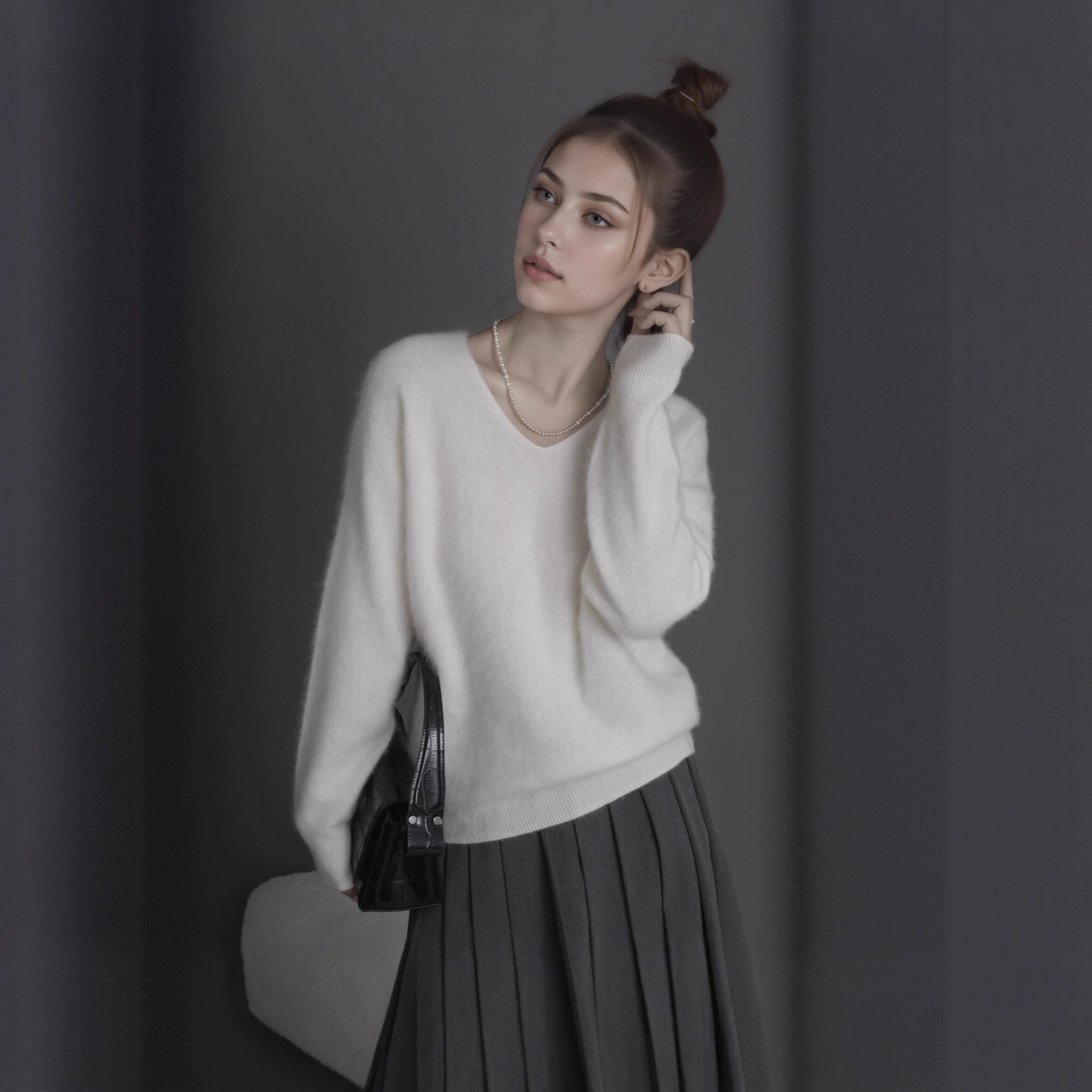 羊毛拉毛毛衣羊绒羊毛半高领圆领V领无缝羊绒拉毛针织衫女式毛衣