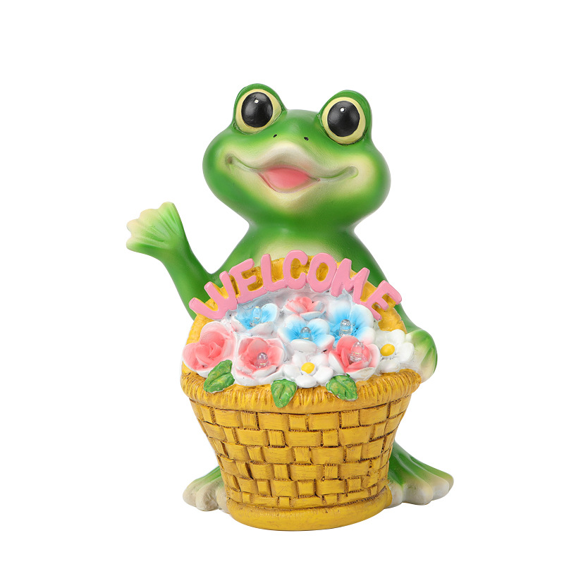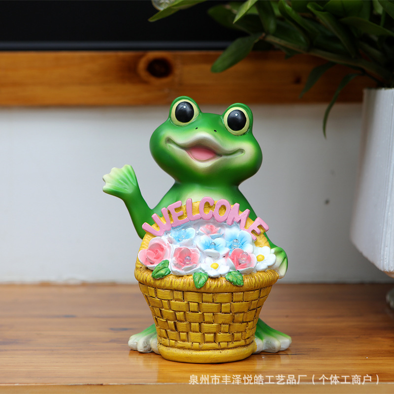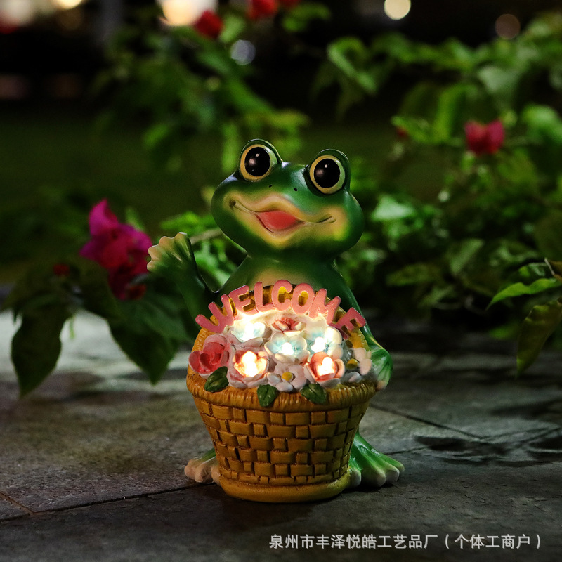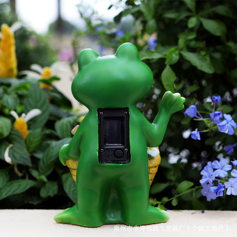 跨境新品青蛙花篮灯太阳能树脂工艺品摆件户外花园庭院景观装饰品