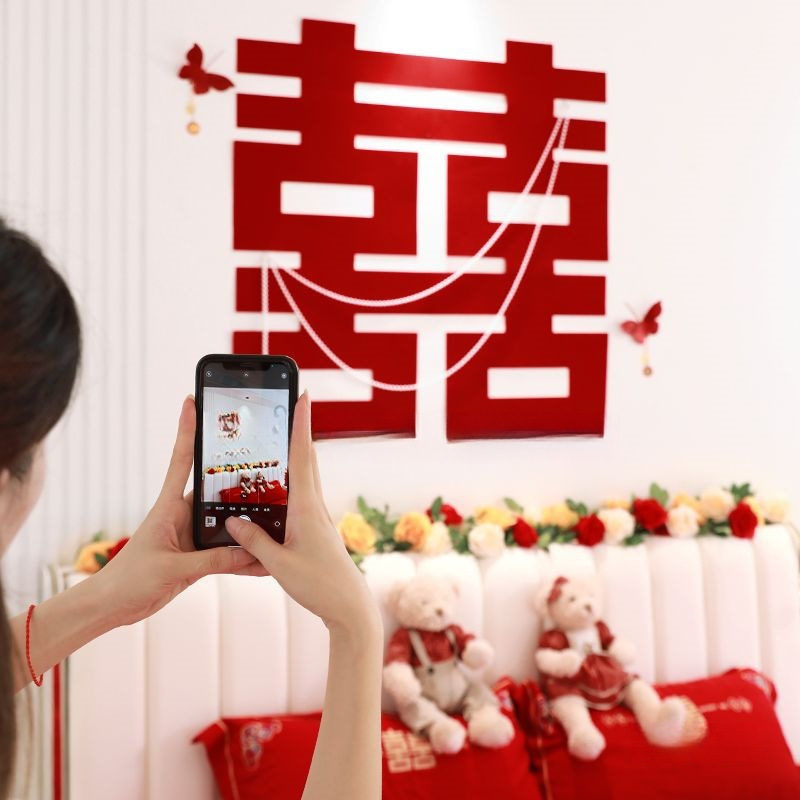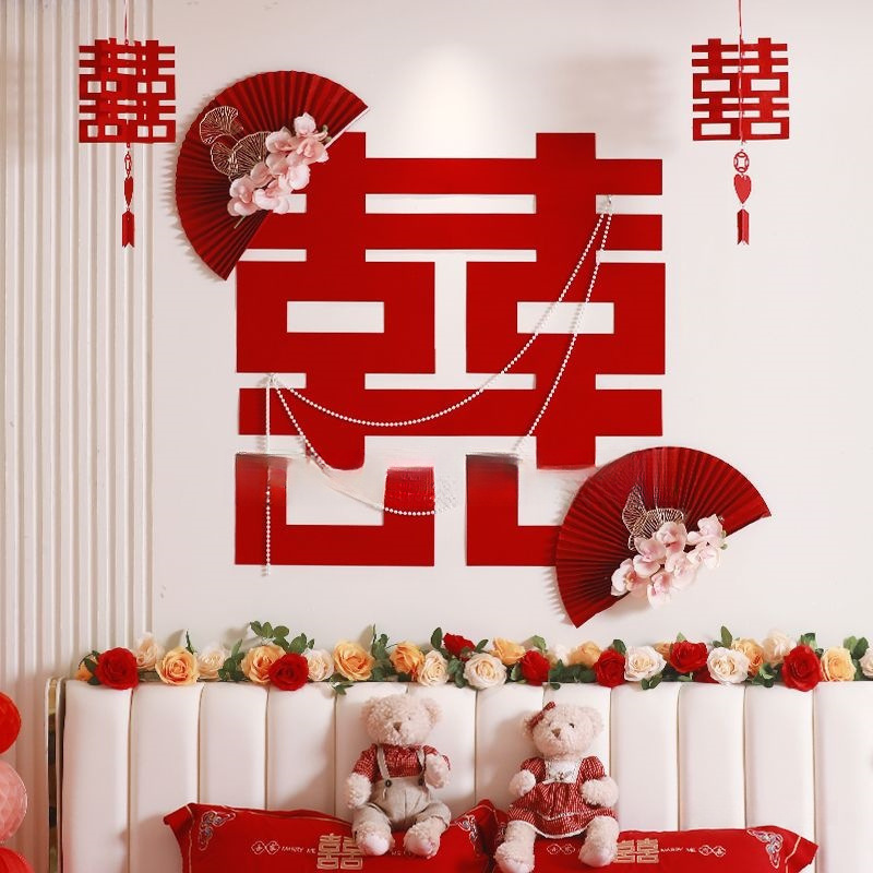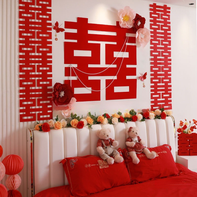 婚房布置套装新房卧室床头喜字结婚布置装饰男方女方订婚背景专用