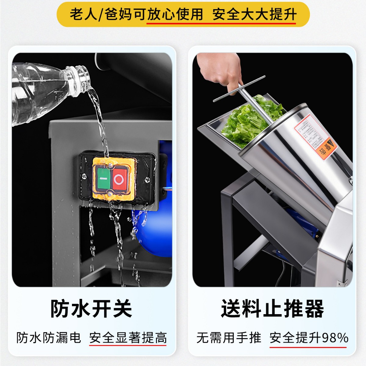 | 规格 | 双进料口:2500w铜芯 12刃【不锈钢八刀+送锰钢四刃】38厚钢板 【粗细可调+终身送刀】 | 规格 | 瓜果蔬菜切丁款【1800w铜芯】桶式不锈钢 【粗细可调+终身送刀】 |