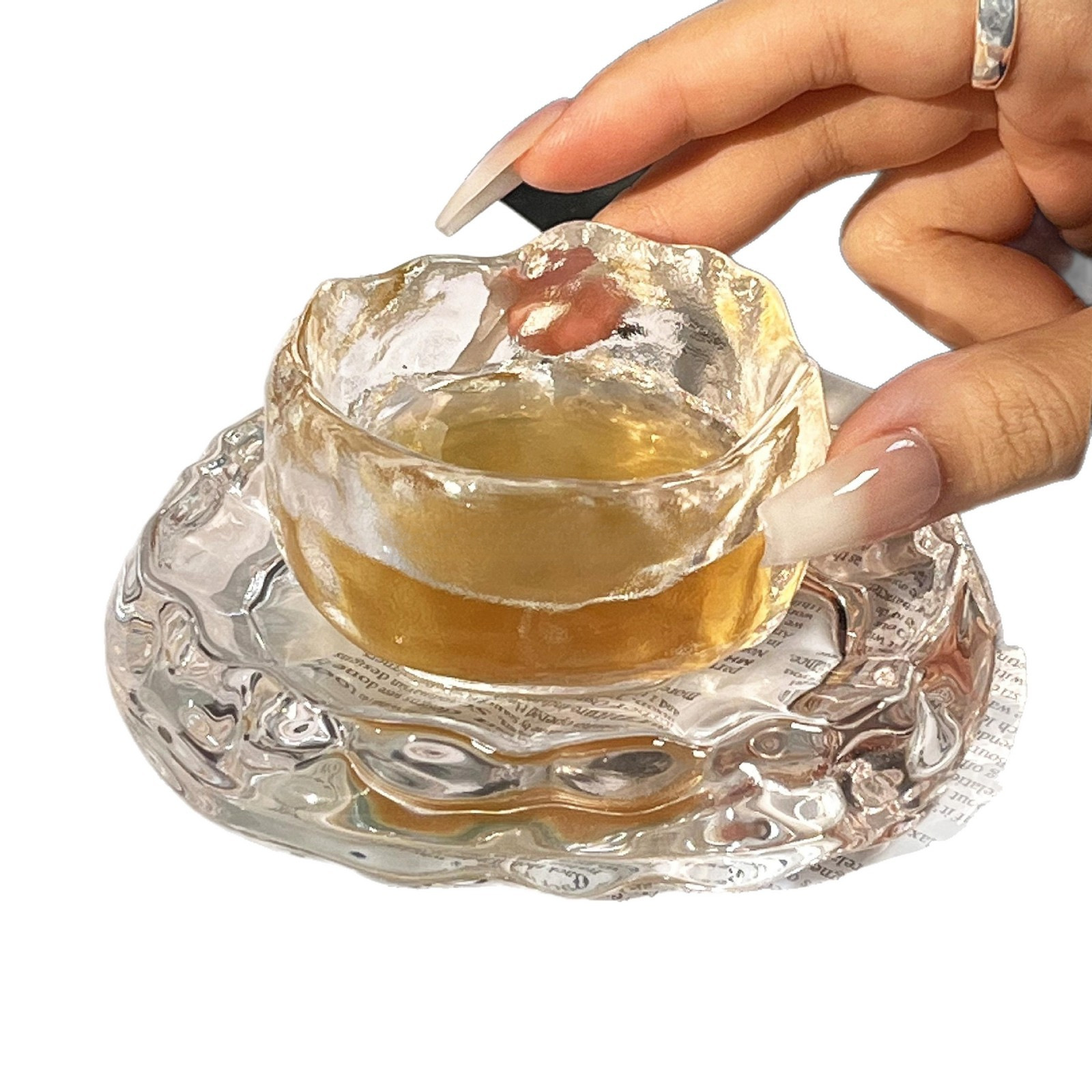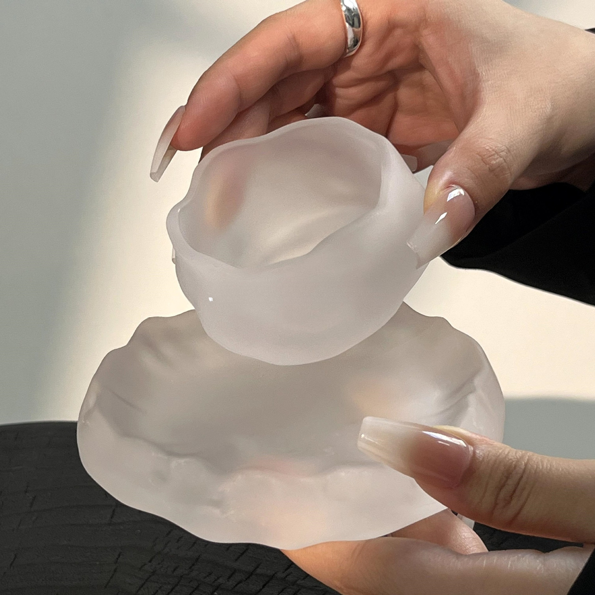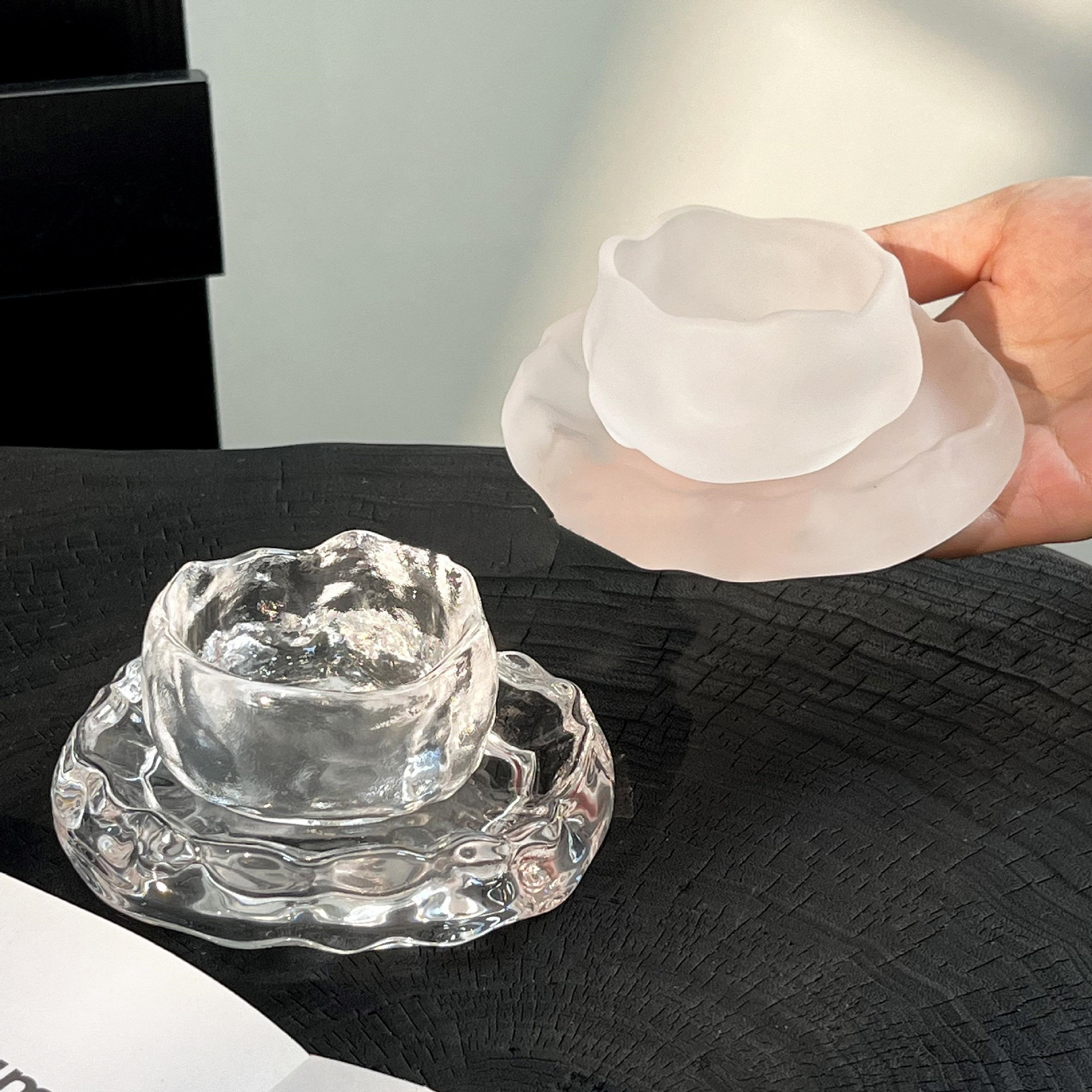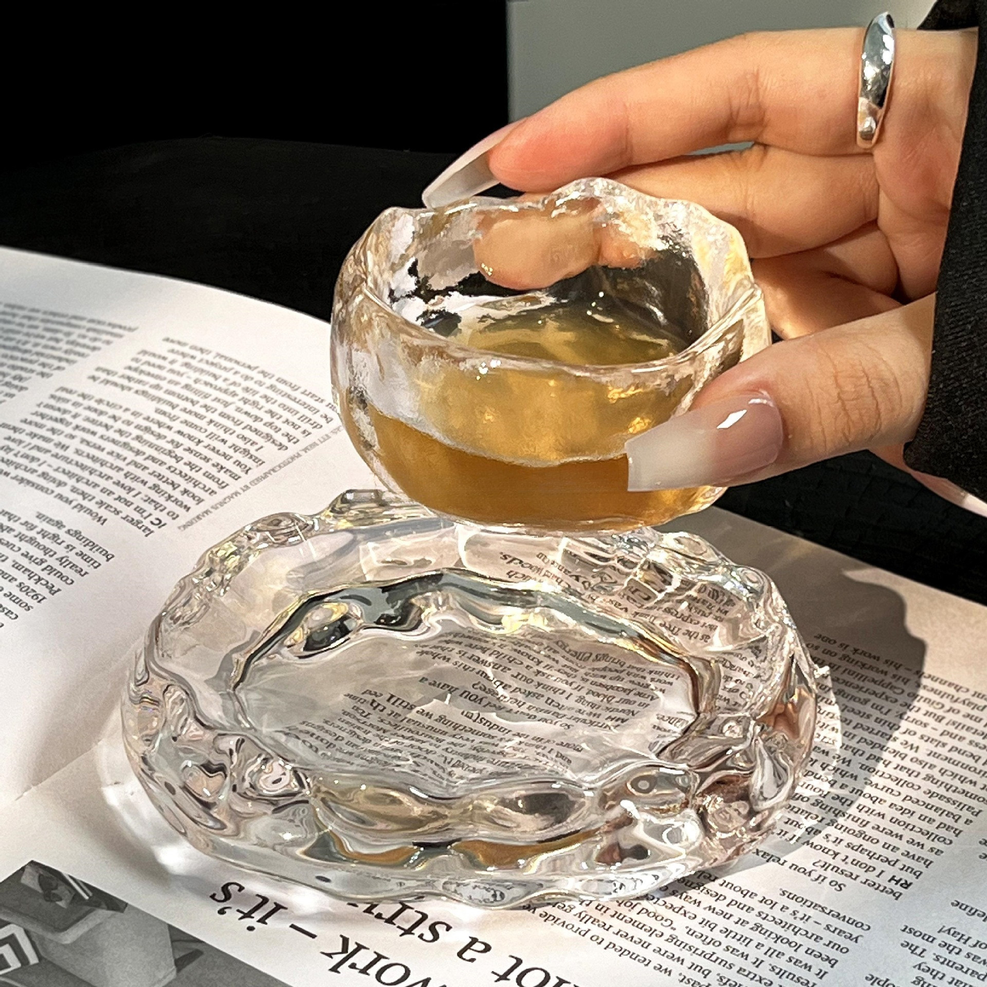 中式玻璃茶杯创意磨砂质感单杯泡茶杯功夫茶杯茶碟氛围感小杯子