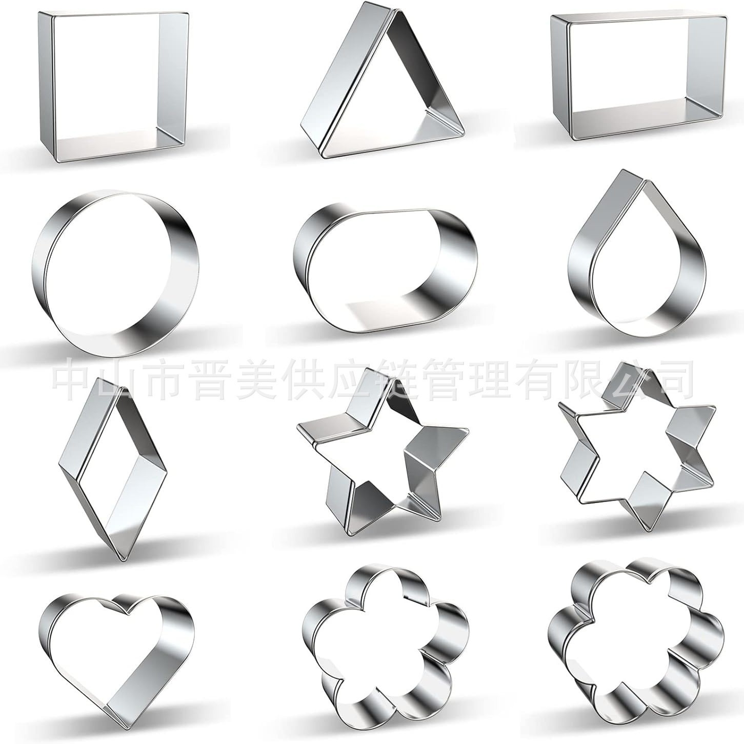 12件生日祝福框套装不锈钢饼干模具几何三角形按压式烘焙工具跨境