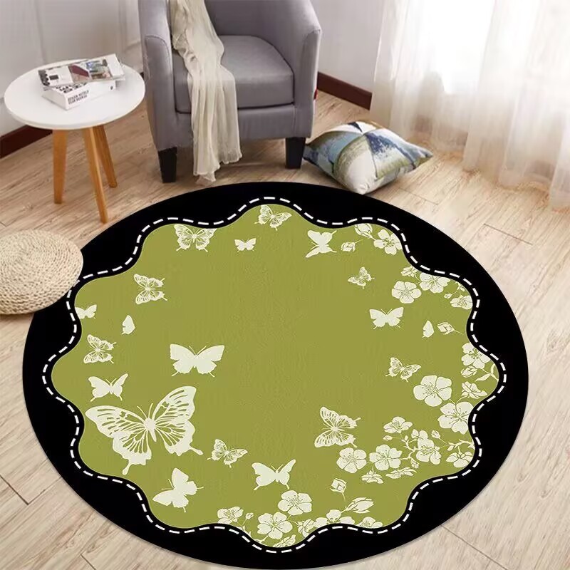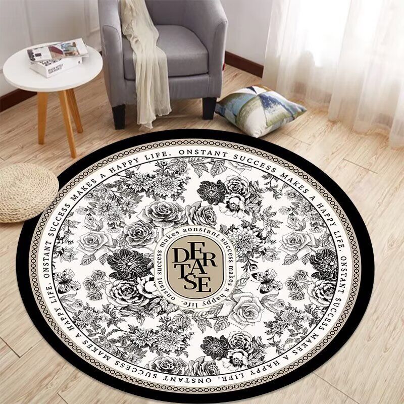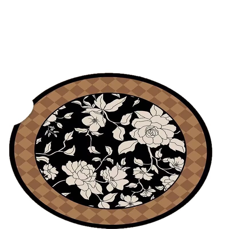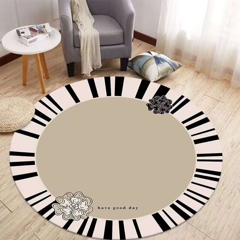 圆形地毯硅藻泥花草高级轻奢风耐脏防水高级条纹地垫