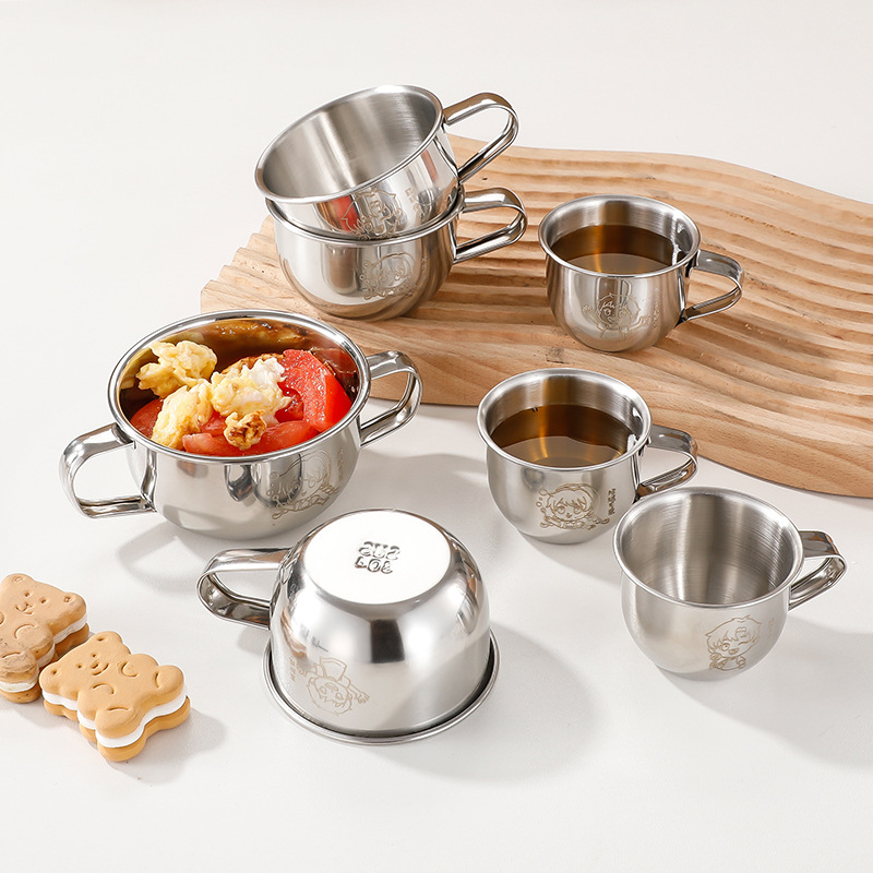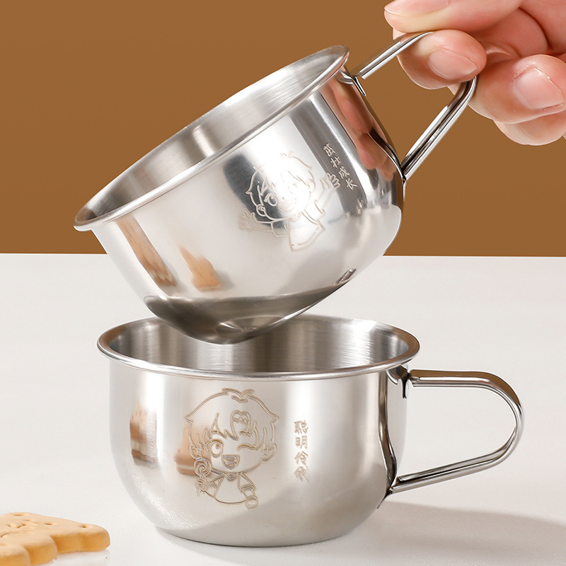 304不锈钢杯子带手柄幼儿园儿童家用金属杯子宝宝喝水餐具杯批发