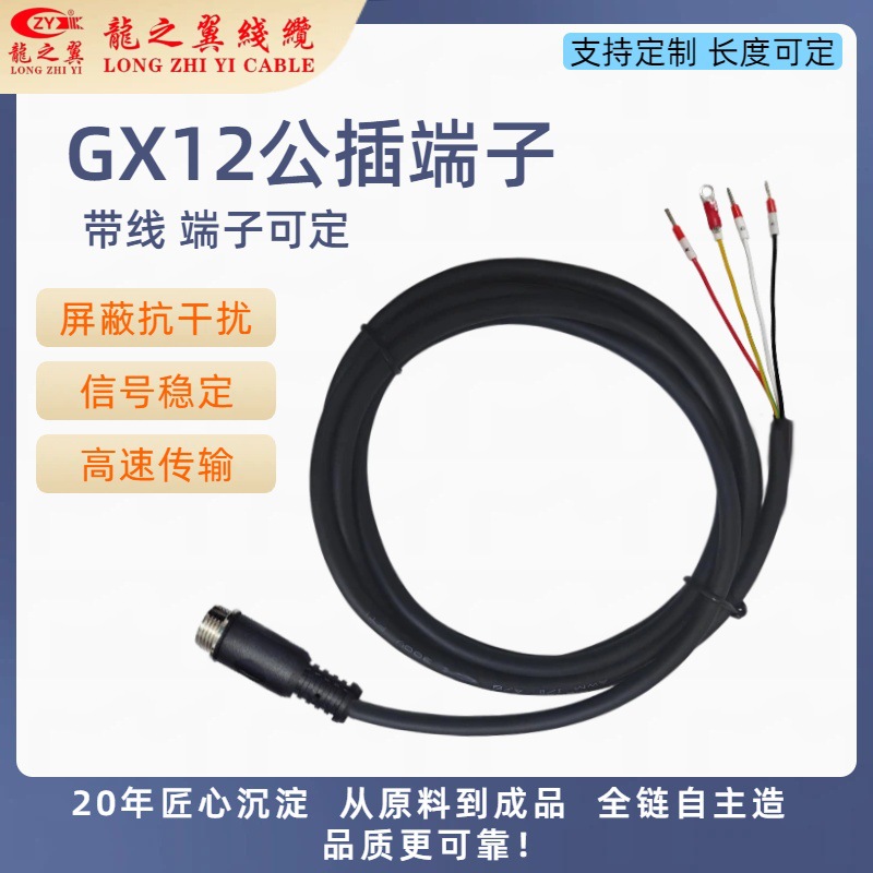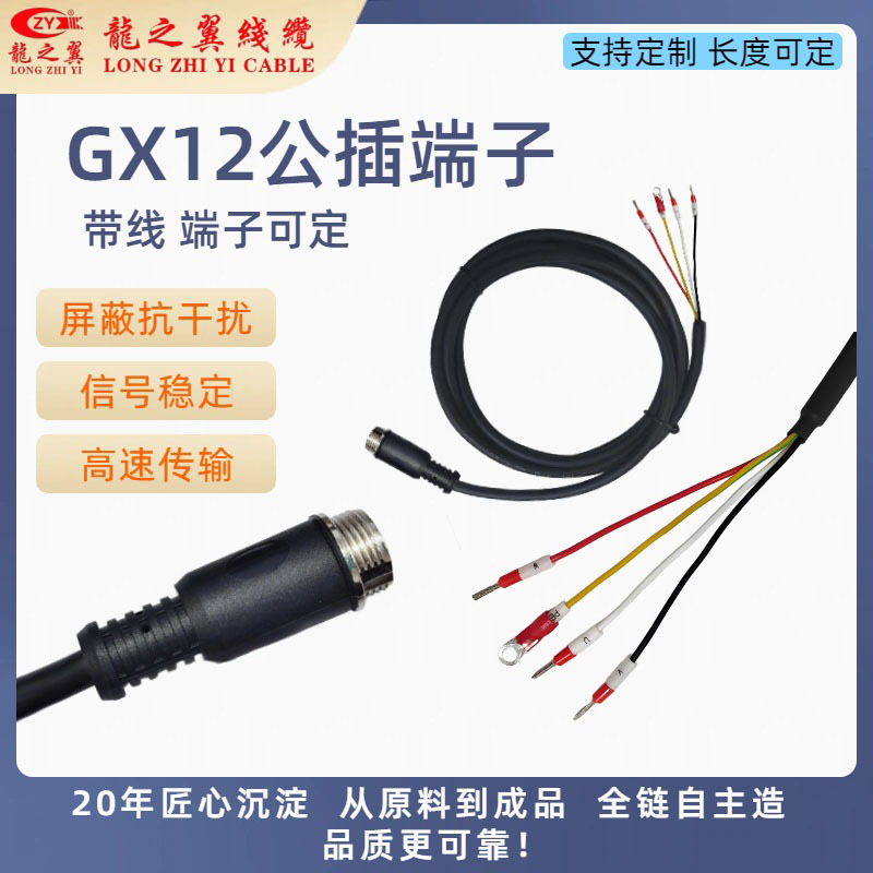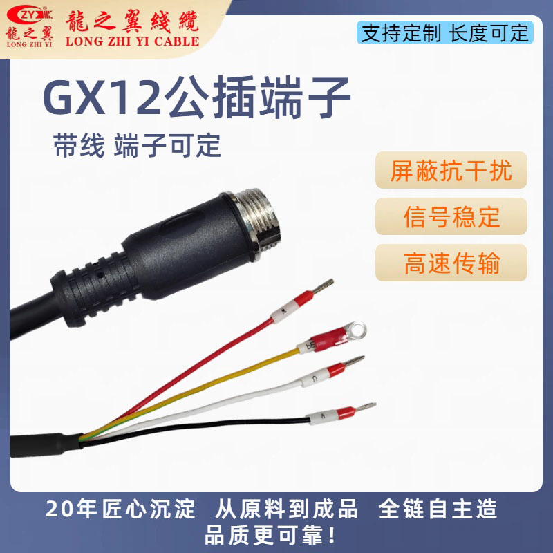 GX12端子插头gx12航空插头4芯公头带线防水屏蔽工业传感器连接线