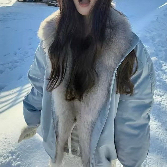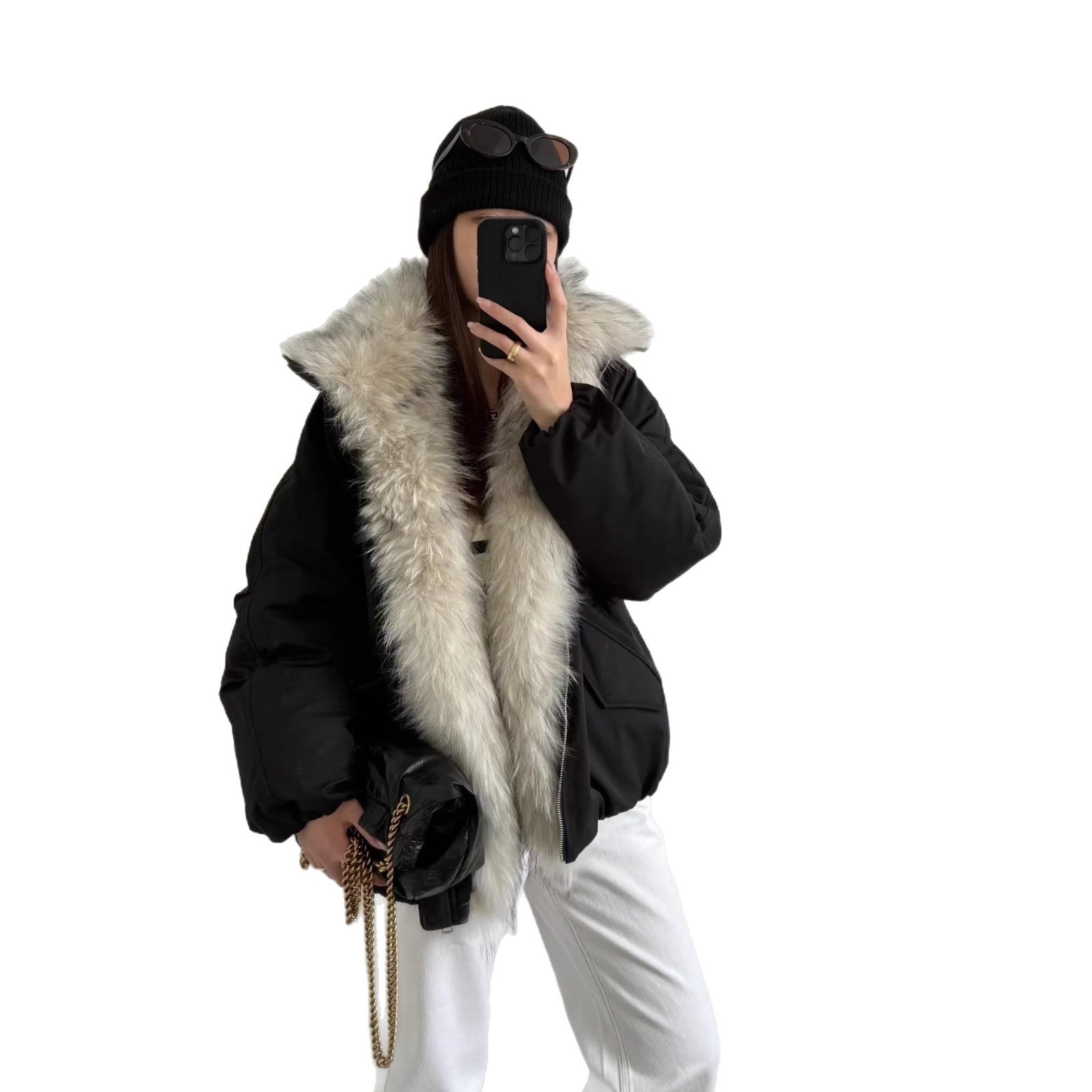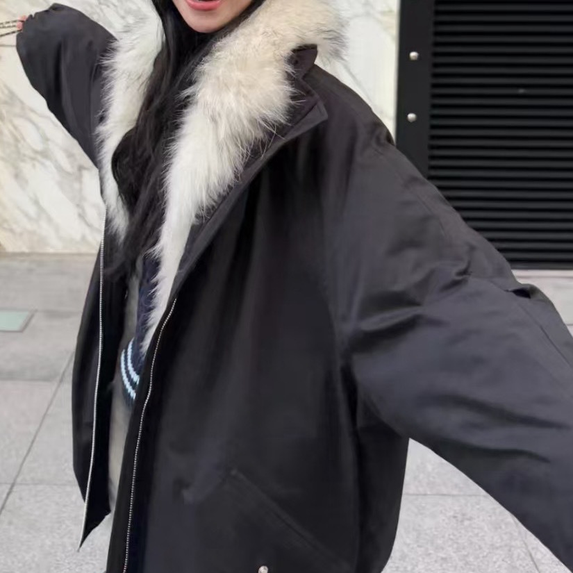 可拆卸拼接无袖环保毛领宽松显瘦派克服棉服女短款韩系棉衣外套