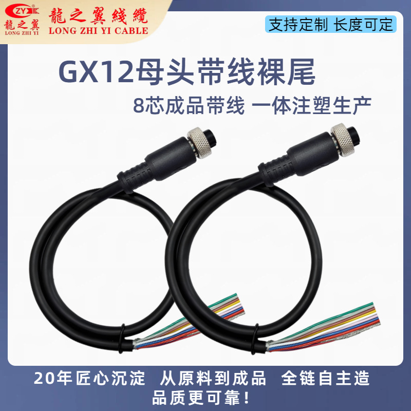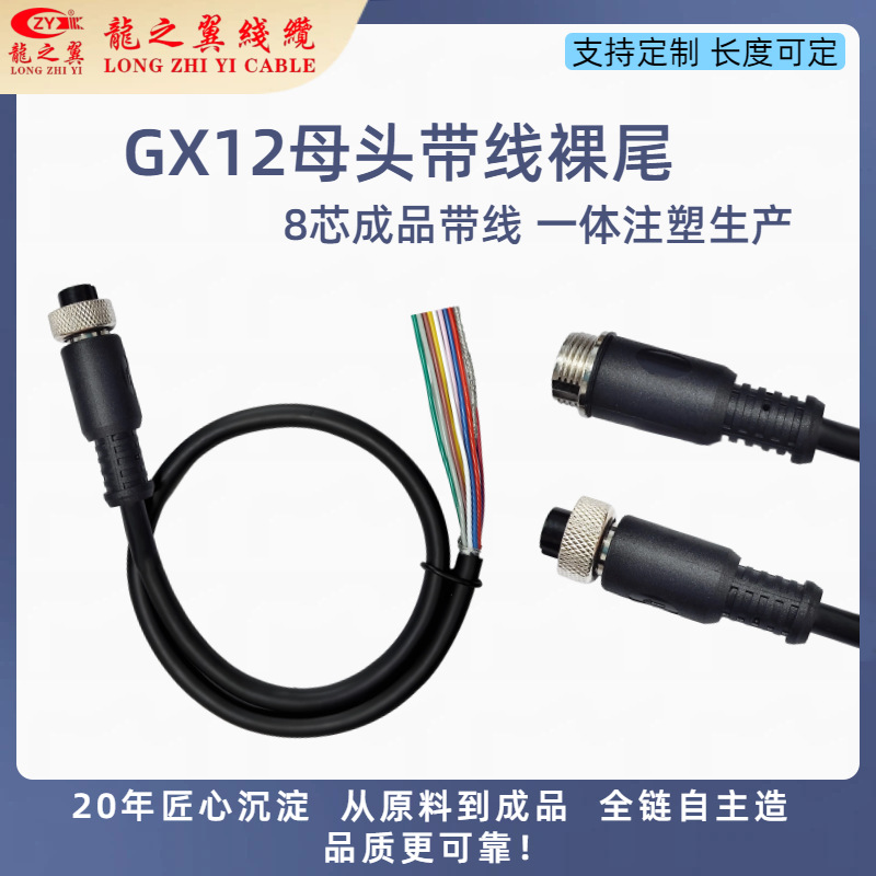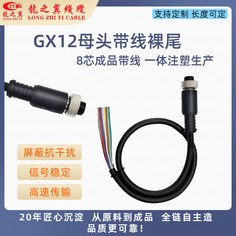 GX12裸尾带屏蔽航空插头安防监控/检测设备连接器工业级航空插头