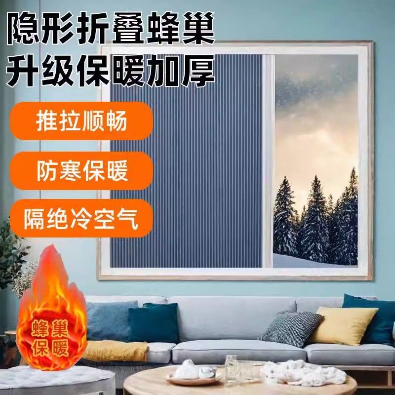 防寒挡风保暖遮光隐形窗帘家用铝合金折叠推拉式卧室推拉窗蜂巢帘