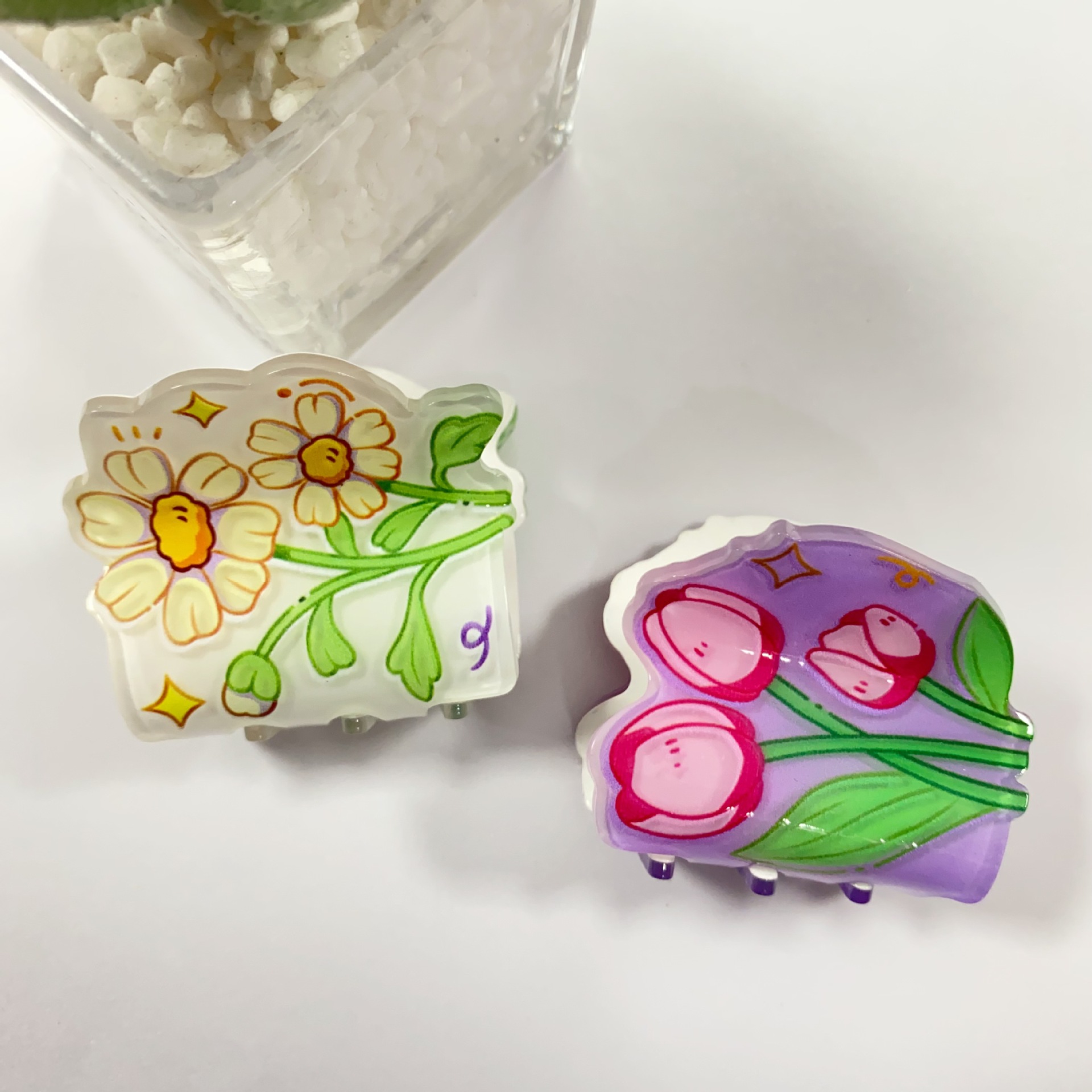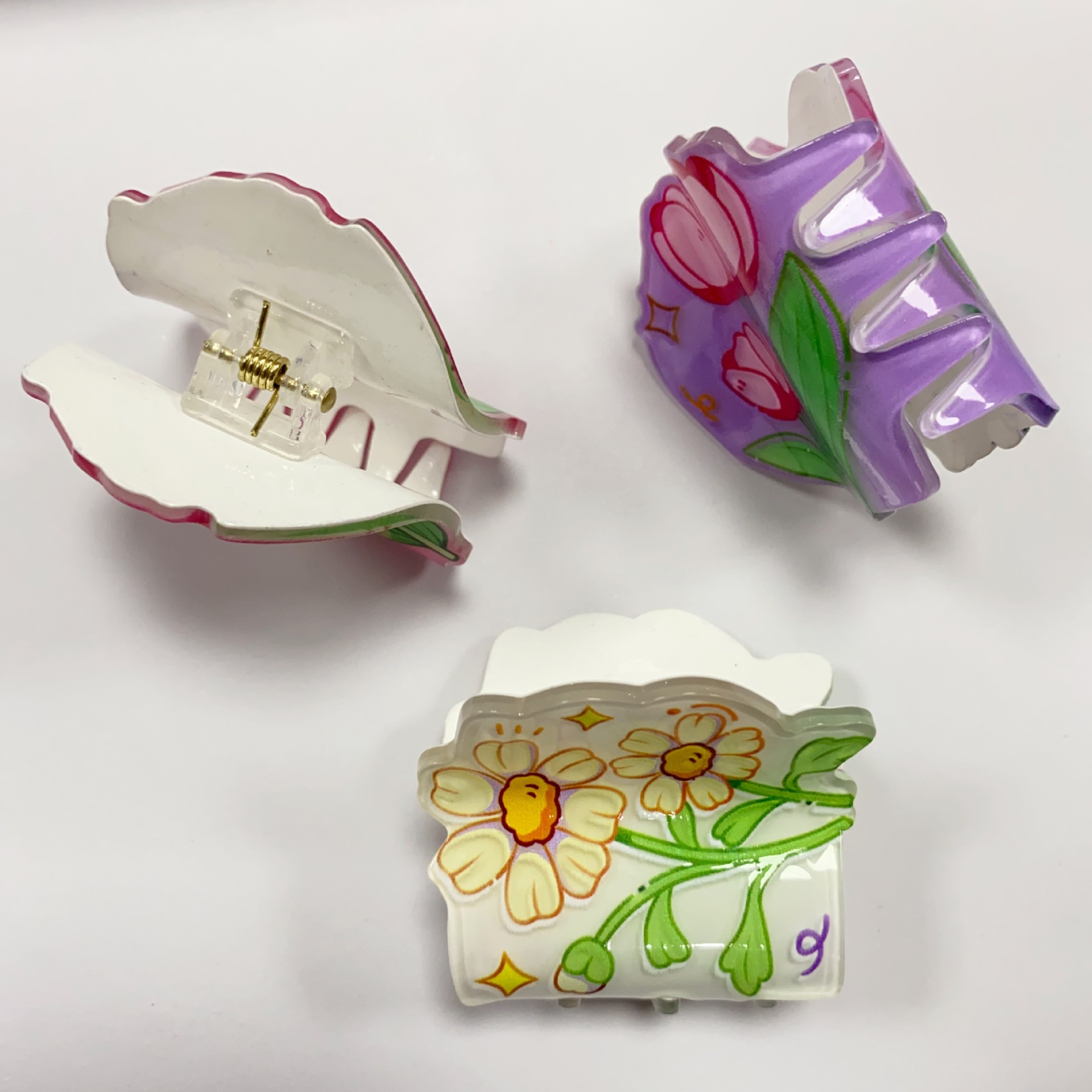 创意小清新亚克力花朵发夹后脑勺盘发鲨鱼夹高级感发饰抓夹批发