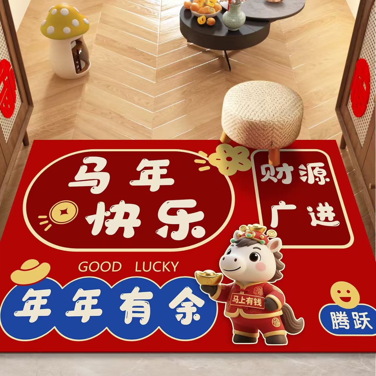 新年马年地毯2026可爱卡通新品代发卡通喜庆