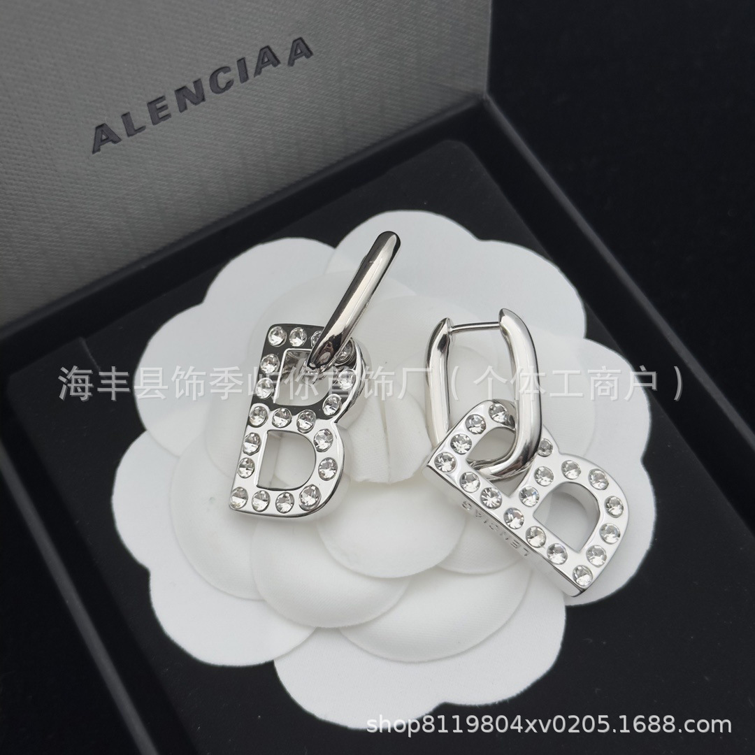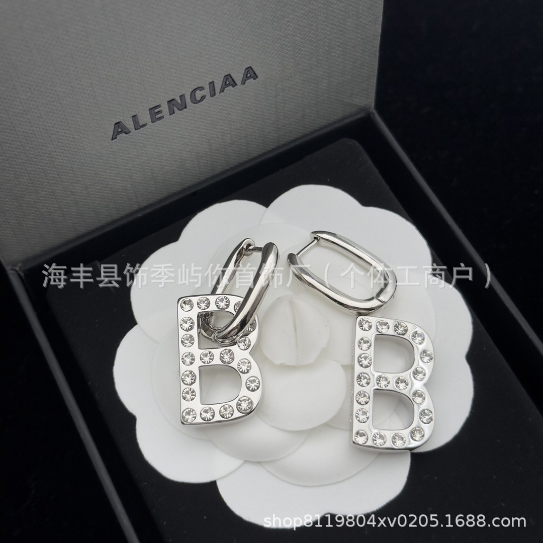 巴家经典款耳钉巴家B字母复古耳环女高版黄铜材质 厂家直销批发