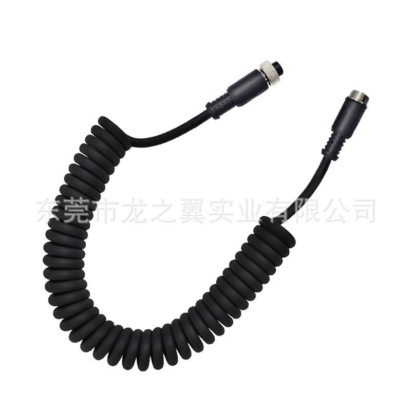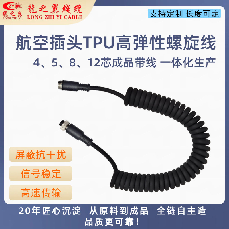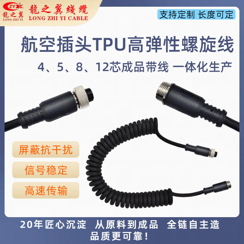 gx12航空插头弹簧线TPU高弹性螺旋线带线防水屏蔽工业机器连接线